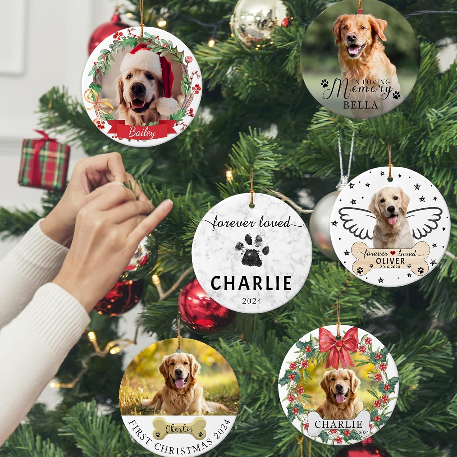 - HIGH QUALITY MATERIAL:Customized dog photo ornaments for Christmas tree are made of high-quality ceramic.Size:2.9".Personalized dog Christmas ornaments 2025 are double-sided color printed, using HD printing technology to create vivid and rich patterns on the ceramic surface,the printed text and picture is not easy to fade. Customizable Christmas ornament is lightweight, easy to carry or give as gifts