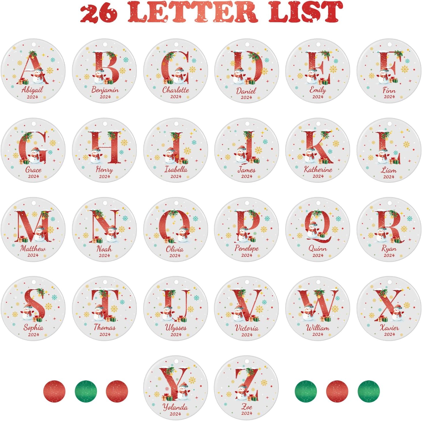Name Ornaments for Christmas Tree, Custom Initial Monogram Snowman Ceramic Ornament for Kids Boys Girls, Monogrammed Christmas Ornaments 2025