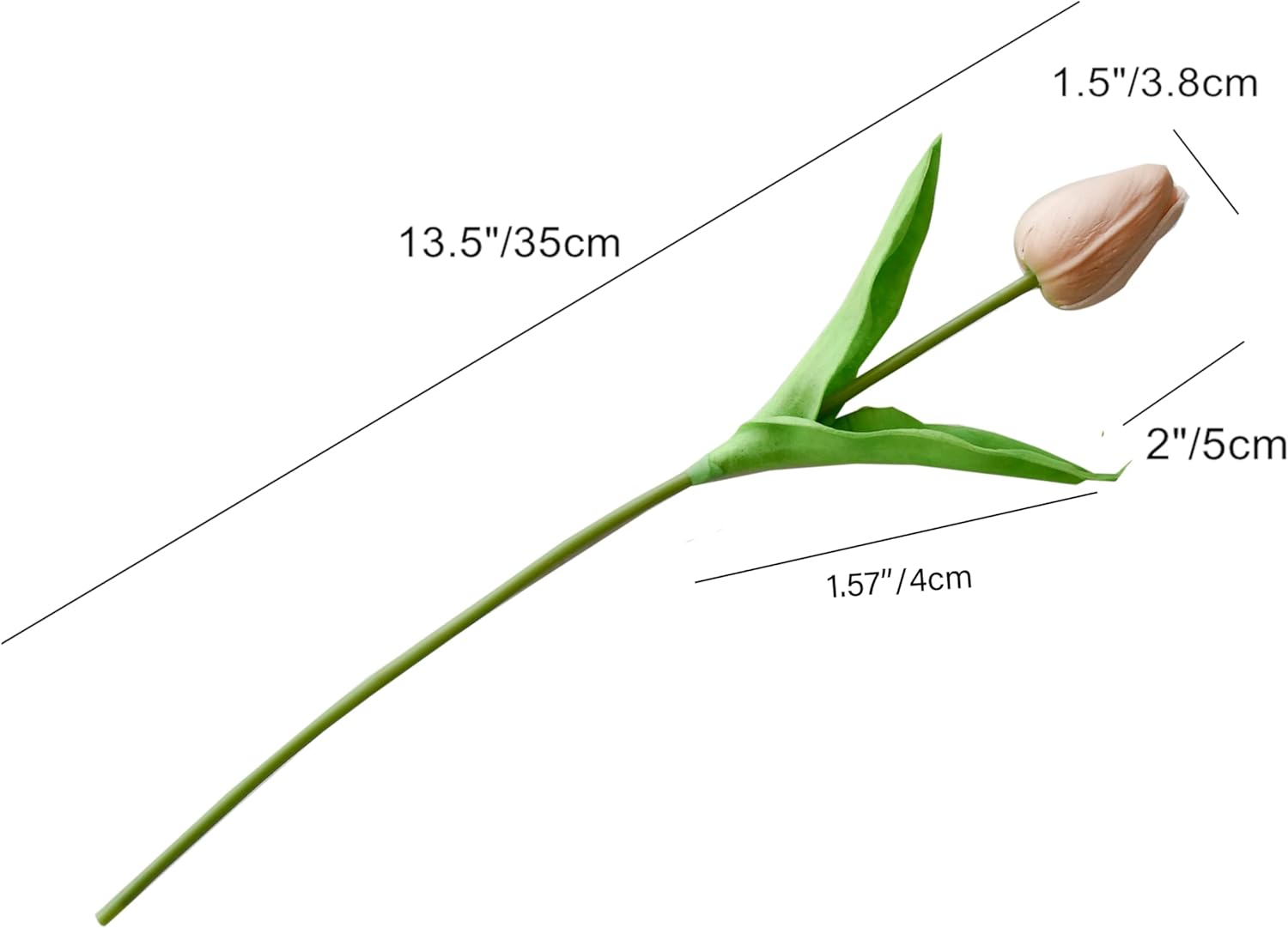 - Premium PU Petals with a Silk-Like Feel.Made from high-quality PU material, each tulip offers a velvety texture and lifelike appearance, closely resembling a freshly bloomed flower.