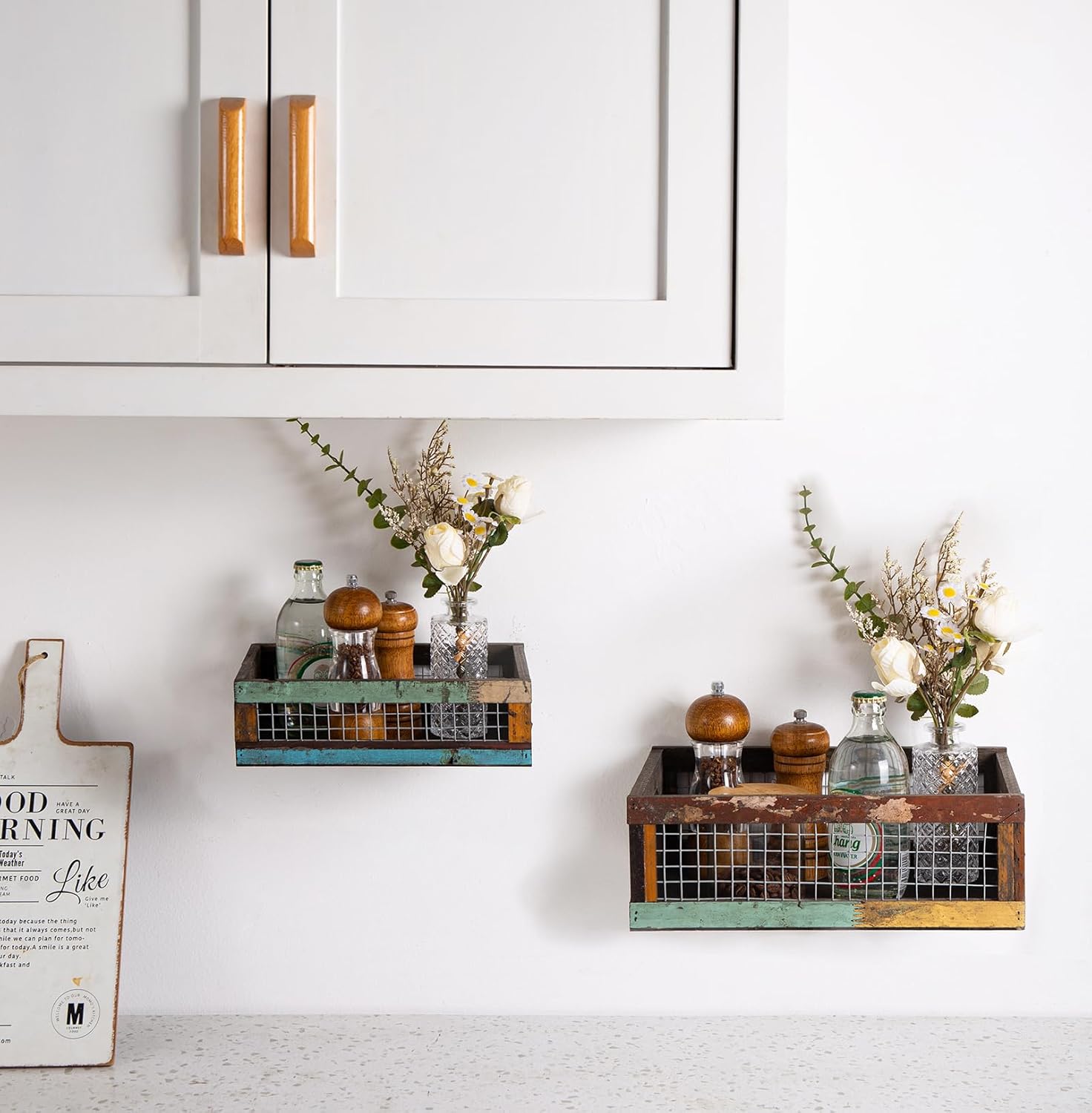 - SUPERIOR QUALITY – Crafted from solid reclaimed wood with wire mesh structure, these countertop crates are sturdy and durable that suitable for long-term use in your family. They are stackable and nested for easy storage and save your space, they can even be used in the drawers or on the walls.