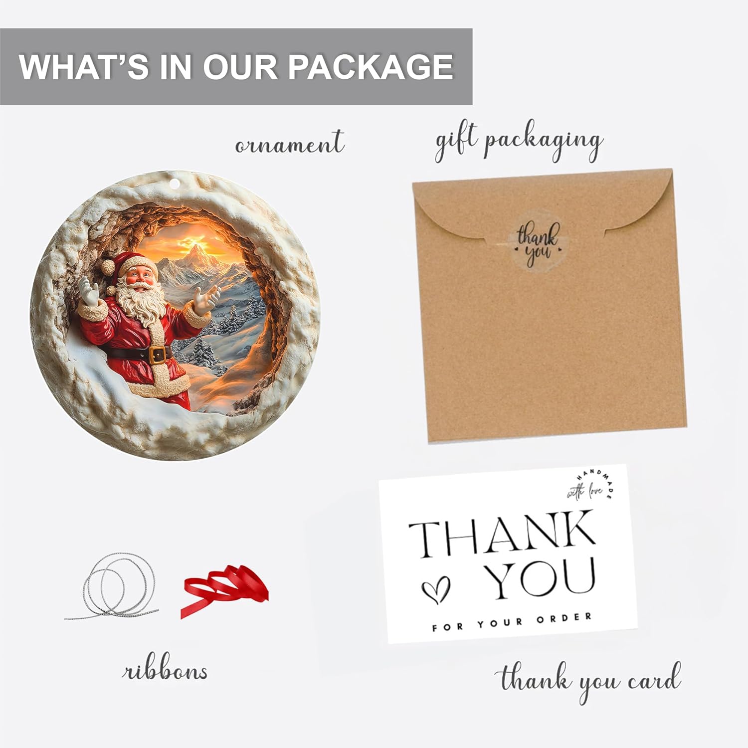Jabihome Christmas Ornaments 2025, Exchange for Women, Men, Collectible Dated Year Ornaments for Tree, Unique Acrylic Suncatcher, Printed Stained Glass Effect Decor (Santa Sunrise)