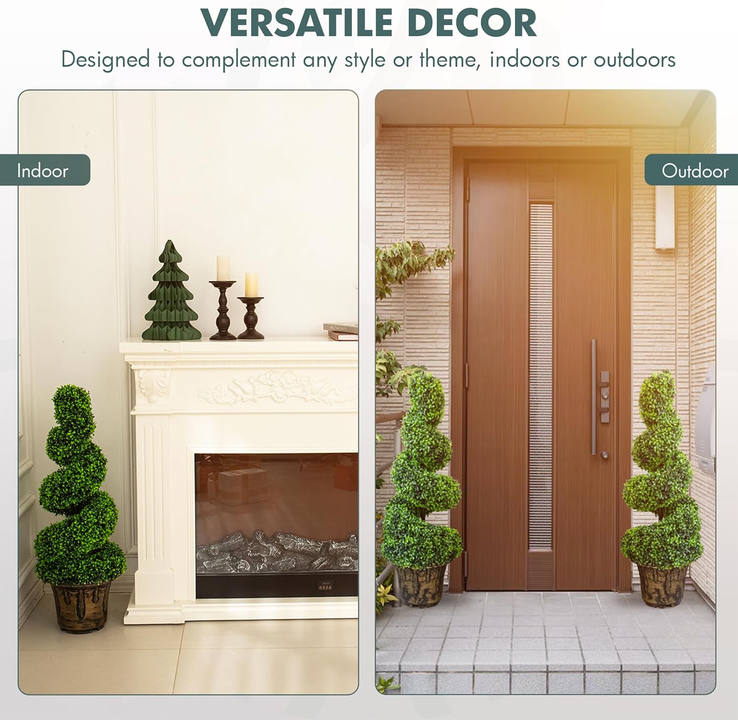- LIFELIKE APPEARANCE - This artificial boxwood spiral topiary tree features lush, vibrant foliage that mimics the look and texture of real boxwood plants.