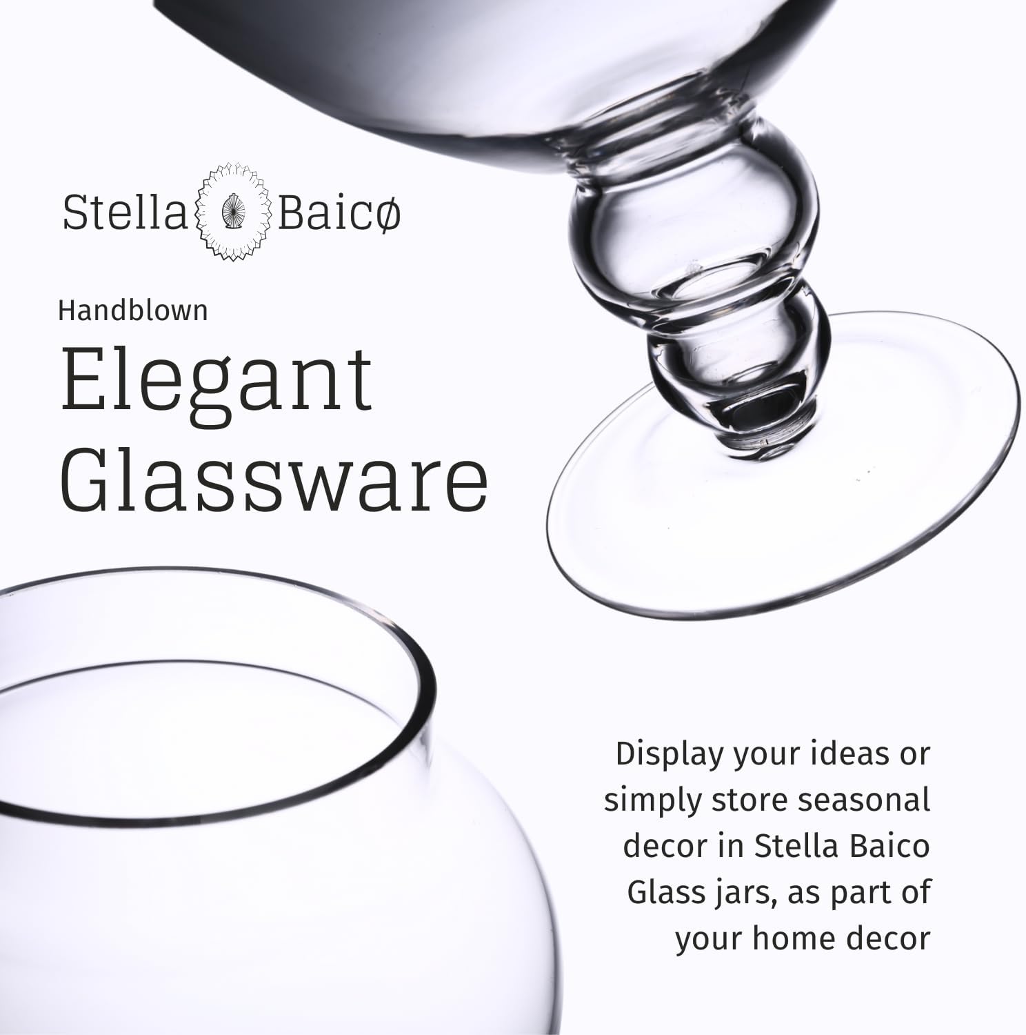 - HAND-BLOWN GLASS: Crafted from durable, high-quality hand-blown clear glass, this apothecary jar features a sleek, crystal-clear design that showcases its contents. Small air bubbles are a natural part of the hand-blown process, adding to its unique charm.