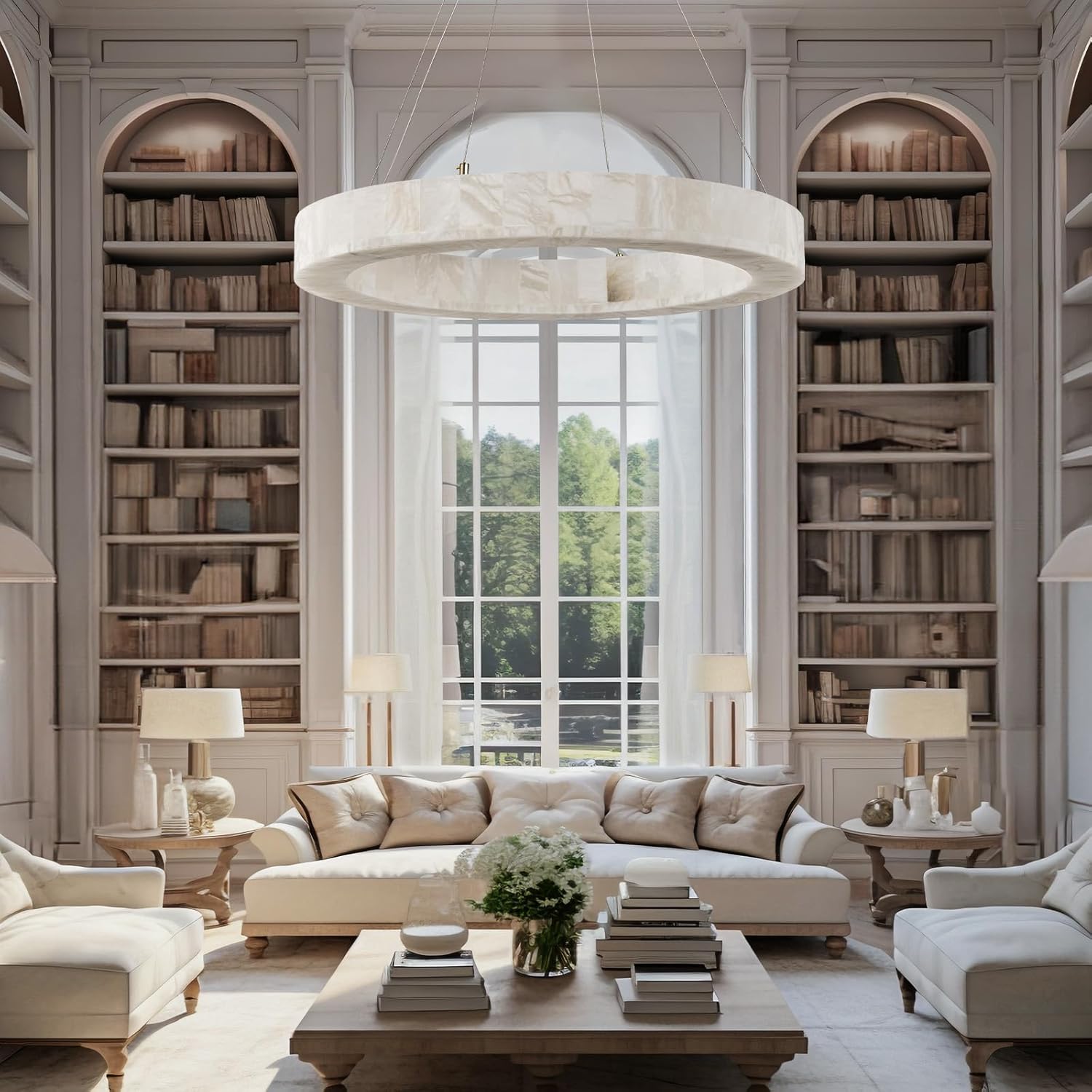 - Wide Application: Alabaster chandelier round is simple and exquisite, perfect match with different styles of home decoration. Whether it is for your living room, kitchen, bedroom, corridor or entrance hall, our living room chandelier will add a touch of elegance to your space.