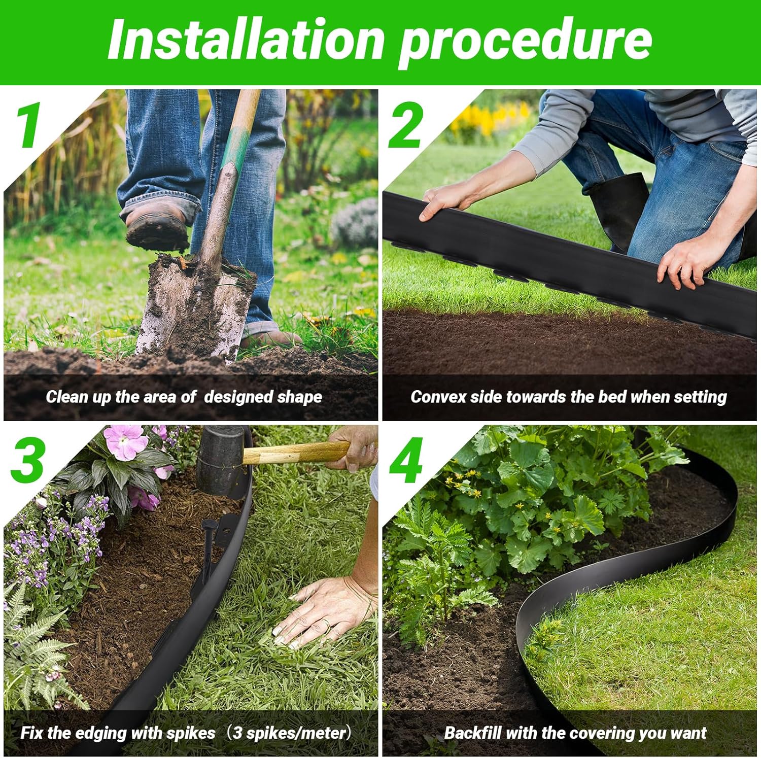 - 【Flexible Lawn Edging】Our no-hole lawn edging is highly flexible, allowing you to easily shape it to fit your design. It’s perfect for bringing your creative landscaping ideas to life with endless possibilities.