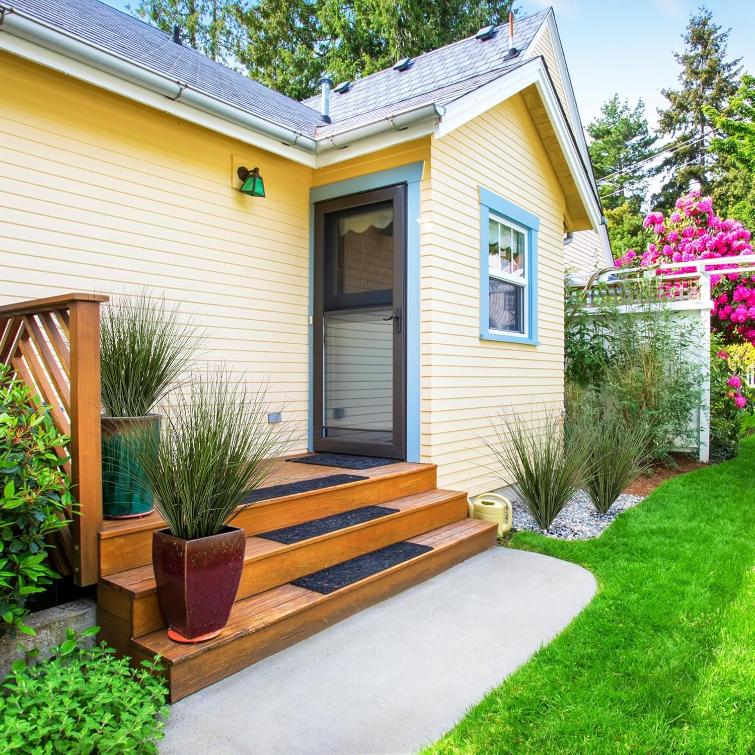 - VERSATILE DECORATION USES: The artificial wheat grass offers endless possibilities for decoration. It can be paired with other artificial plants to create a diverse greenery arrangement indoor, adding a pop of freshness to any room. For Outdoor use, it can be used to line walkways, fill flower beds, or enhance the edges of a garden. It's also a great choice for artificial grass plant projects, such as creating a miniature landscape. Its versatility makes it suitable for various home decoration.