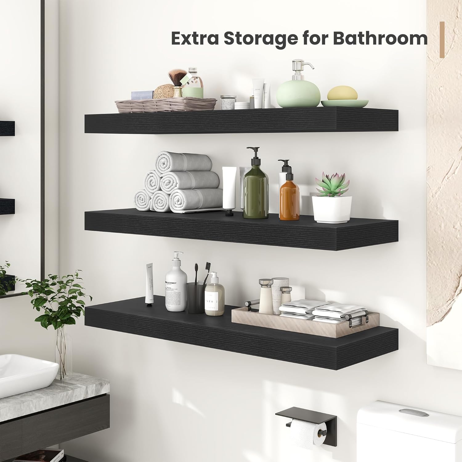 Heimlove 12" Deep Floating Shelves, 36 x 12 Inch Wall Mounted Long Floating Shelf with Invisible Brackets, for Home Decor, Bedroom, Kitchen, Living Room, Bathroom - 2 Pack, Black