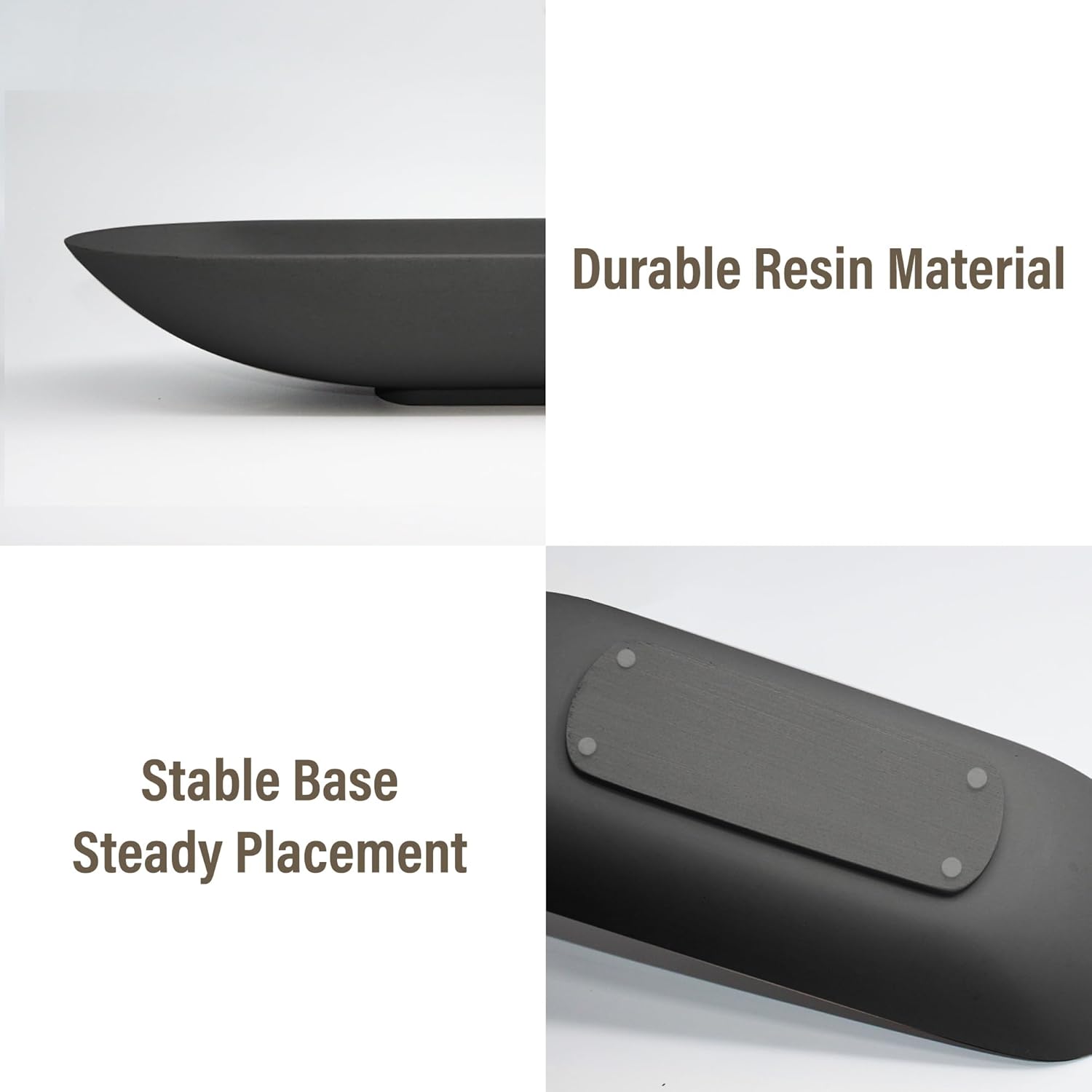 Large Decorative Bowl for Home Decor - Long Dough Bowl with Anti Slip Base for Table Centerpieces - Black Minimalist Design Dough Decor Bowl for Coffee Table, Dining Table Centerpiece