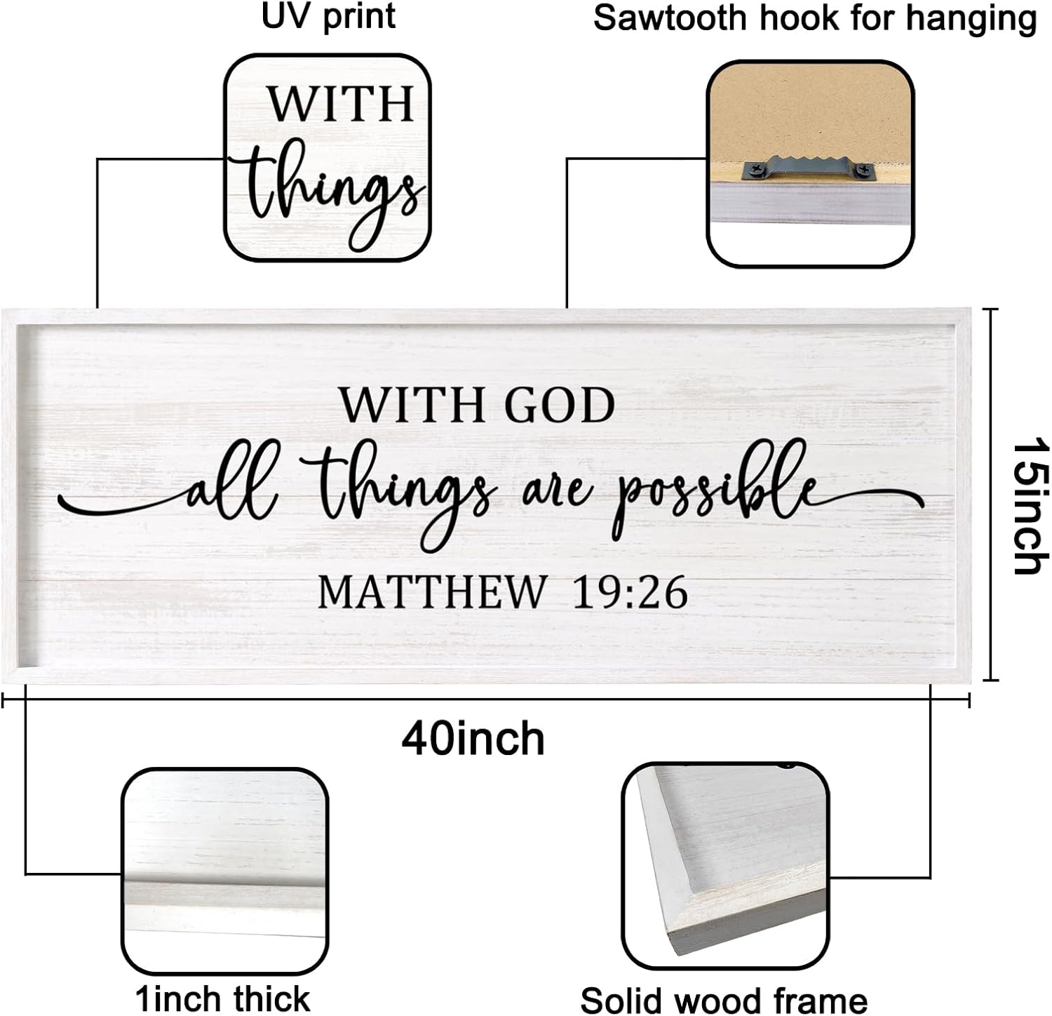 - 【Encouraging Words】With god all things are possible large hanging wood sign adopt minimalist letters on the white background, showing constant reminder of faith and devotion in any setting and you passion for god, adding a touch of elegant, and classic beauty to your space and giving people a calming feeling.