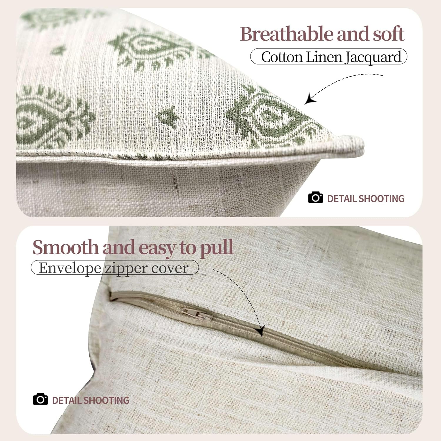 Floral Pillow Covers 20x20 Set of 2 Decorative Throw Pillow Covers Neutral Floral Paisley Farmhouse Pillow Covers for Sofa Couch Bed