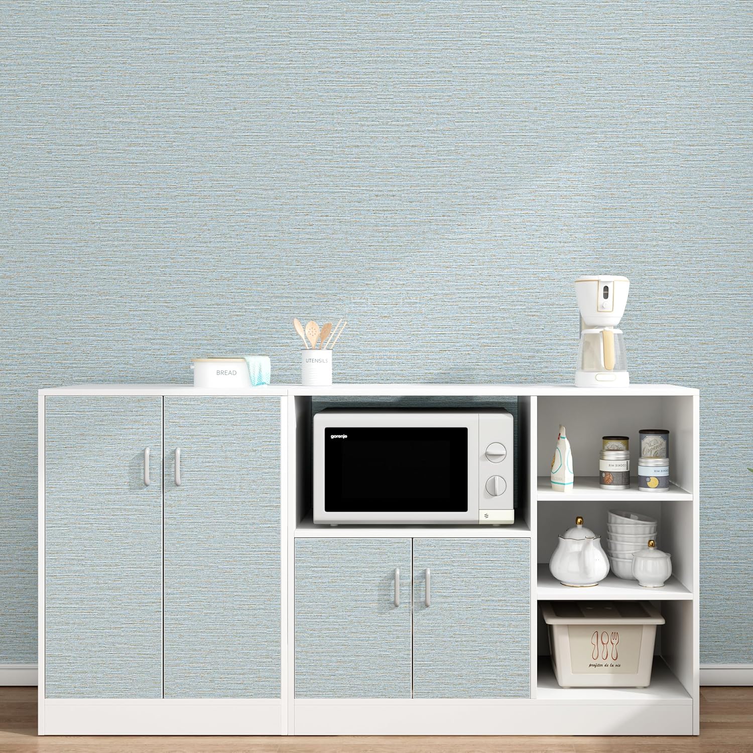 - SIZE: 1 roll = 20.8 inches wide x 32.8 feet long = 56.7 sq. ft. [Color/Pattern] The wallpaper features a blue base color overlaid with organic, plant fiber-textured vertical stripes. Accented with yellow and white, the pattern is completed by subtle, dashed horizontal stripes crisscrossing the surface. Comes with Installation instruction and LIFETIME WARRANTY .This Grasscloth removable wallpaper mimics the look and texture of authentic grasscloth, bringing timeless beauty into any space.