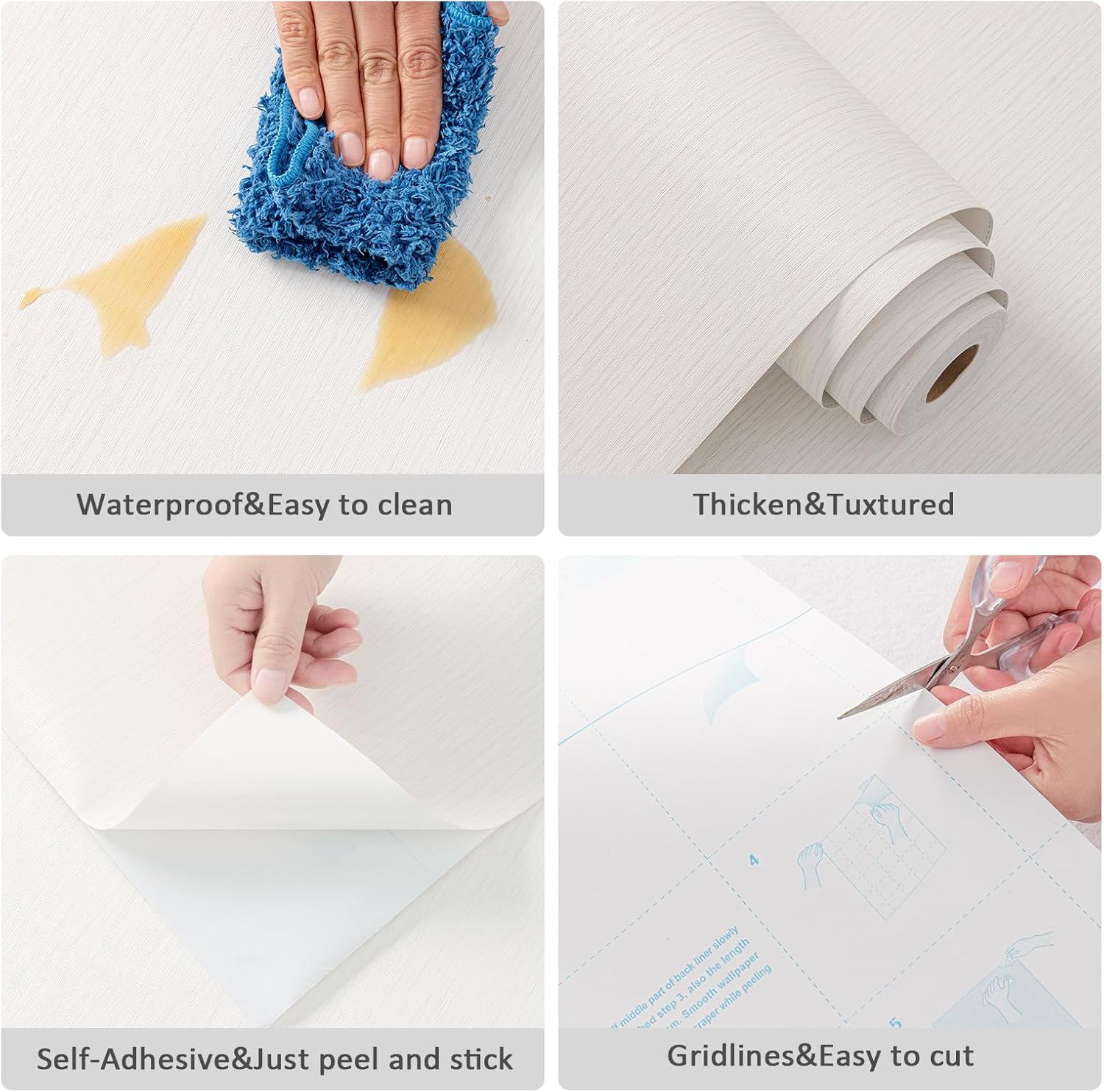- FEATURES--Vinyl/pvc material. Thicker than normal wallpaper, full of real texture,self adhesive, easy to apply. Waterproof . Indoor use, ideal for most smooth flat surfaces such as bedroom,living room,cabinets,furniture,etc.