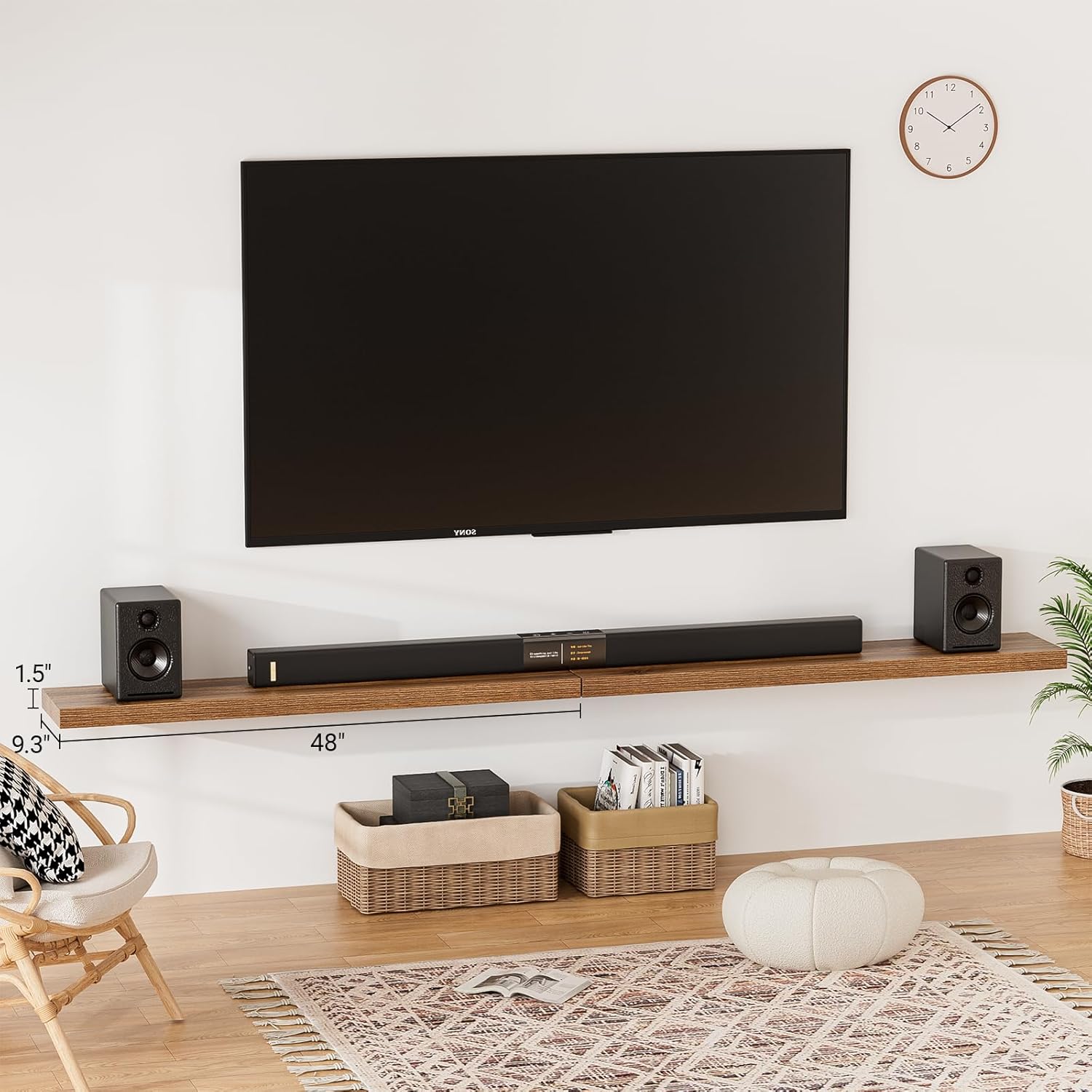 - ăLonger DesignăOur pretty wall shelves are 48"W x 9.3"D x 1.5"H.Our walnut floating shelves is longer than traditional designs and can hold more items.The floating shelf optimize wall space,helping organize essentials without taking up floor space in your home.
