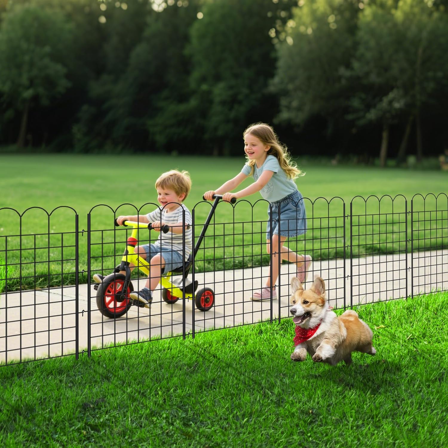 - Multipurpose Decorative Fence: The metal dog fence panels features a classic black design that perfectly complements any garden or patio style. This Patio Fence Can be Used as a Small Garden Fence or an Animal Barrier Fence. It Is Very suitable for Garden Borders, Patio Fencing, Animal Barriers, Dog Fencing, Rabbit Fencing, Flower Border and more