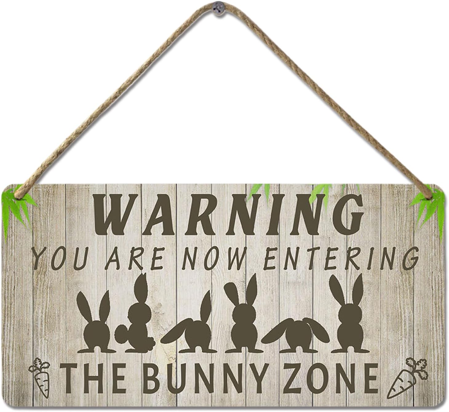 Easter Rabbit Sign Funny Bunny Wall Art Decor Rustic Bunny Wood Signs for Home Decorations Rabbit Lover Gifts for Women The Bunny Zone Sign 12x6 Inch