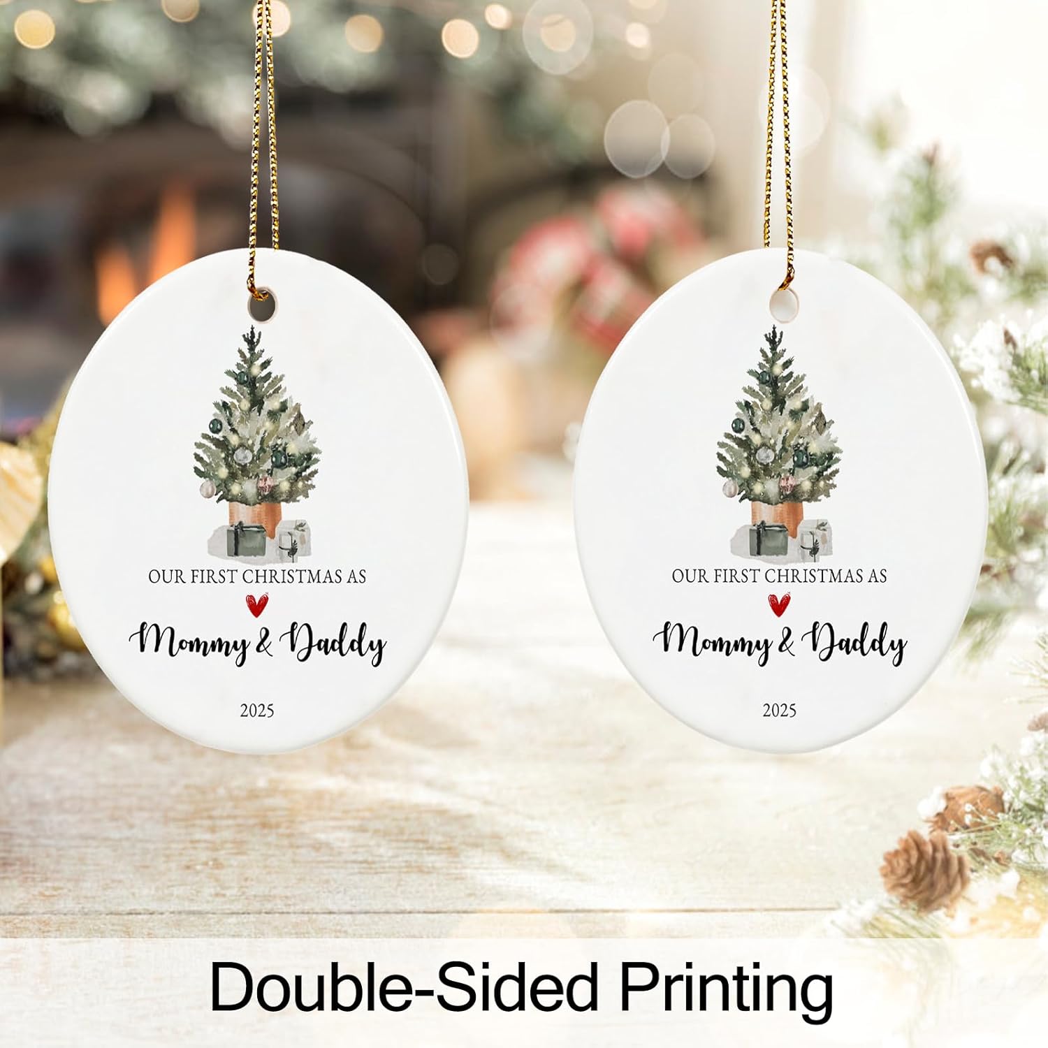 - Wonderful Christmas Ornament- Our first christmas as mommy and daddy ornament 2025 perfect decoration to holidays in home. Hang the First christmas as mom and dad ornament on the window,wall,Christmas tree,enhancing your holiday decor.and double-sided printing can see its beauty from any angle.