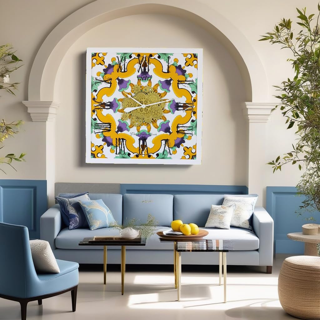 - Wall Clock Italy Collection with Real Moving Gears is an Art Timepiece inspired by the Famous Amalfi coast Tiles in Italy