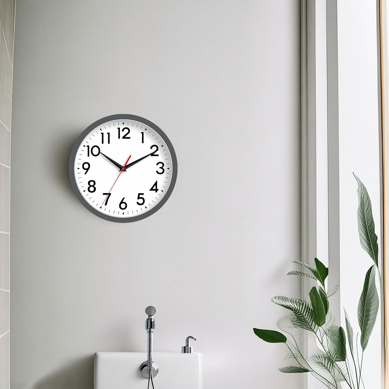 Wall Clock Small Analog 8 Inch Silent Non Ticking Battery Operated Modern Simple Decorative for Kitchen Office Bedroom Bathroom Living Room(Gray)