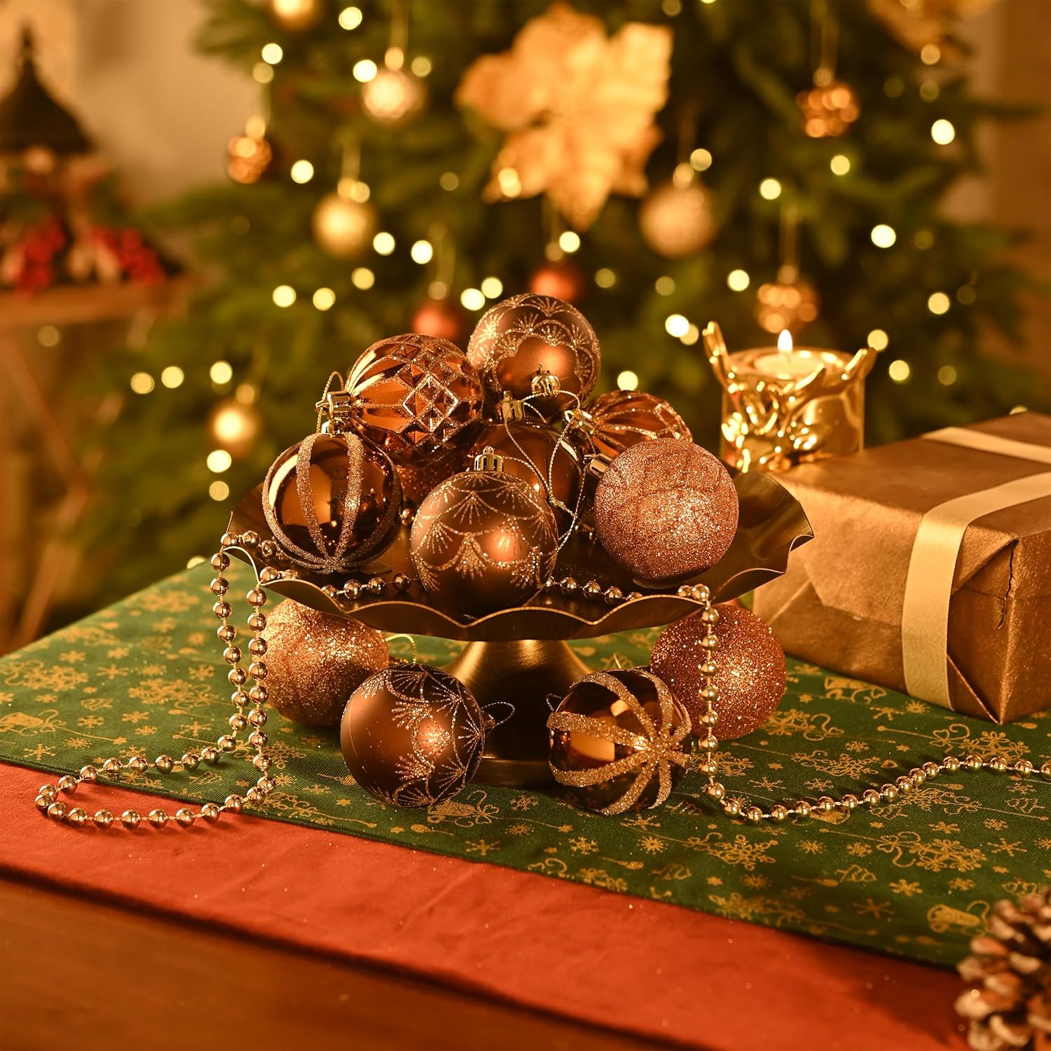 - 【Original Design】Valery Madelyn is a retail brand adhering to original seasonal decorations. This set of Christmas balls applies bronze copper brown and gold colors to create a elegant atmosphere