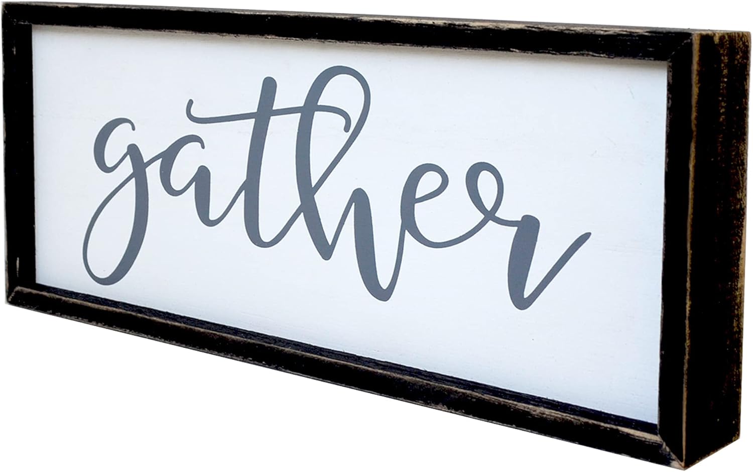 Gather Sign for Home Decor in Grey - Farmhouse Kitchen Dining Room Wall Decor - Rustic Wall Decoration Solid Wood Thick Black Frame 12x5 Inches