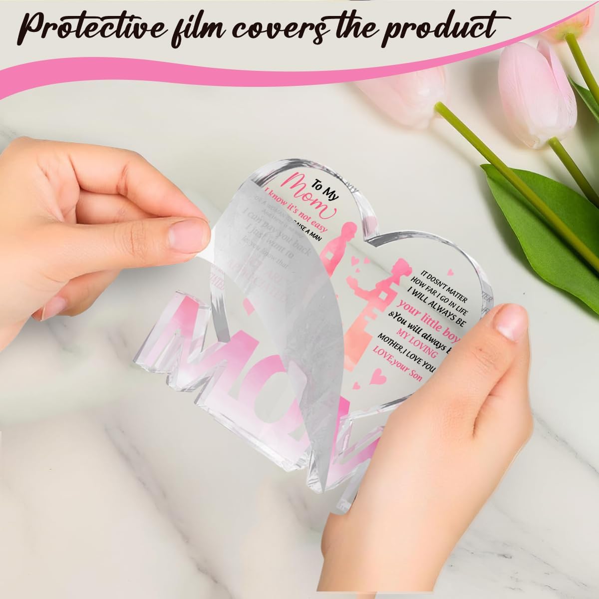 Mothers Day Gifts Best Mom Gifts -Gifts for Mom from Daughter Son - Best Mom Ever Gifts Unique Mother Birthday Acrylic Heart-Shaped Plaque Desk Decorations Present for Mom Christmas Anniversary