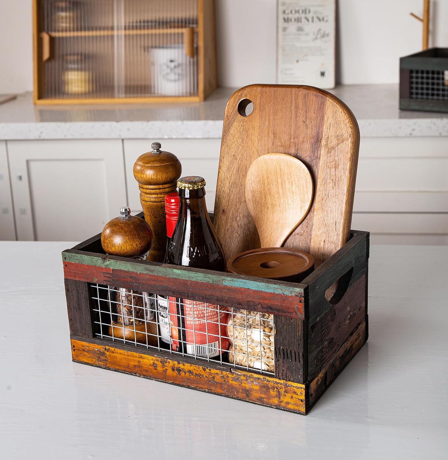 - SUPERIOR QUALITY – Crafted from solid reclaimed wood with wire mesh panels, these nesting crates are sturdy and durable that suitable for long-term use in your family. They are stackable and nested for easy storage and save your space, they can even be used in the drawers or on the walls.