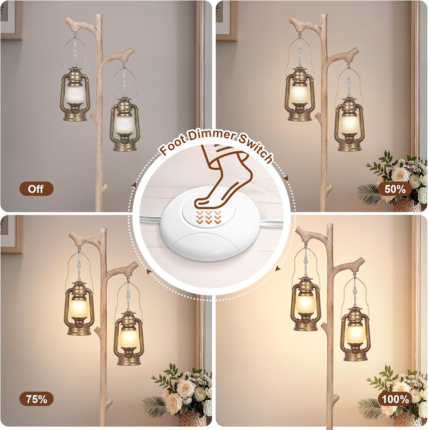 Scenekoy Vintage 68” Tall Floor Lamp with Lanterns, Retro Standing Lamp Tree Trunk Finish & Resin Body, Rustic Dimmable Corner Lamp Stand Up Light with Bulb Prefer for Living Room Bedroom Home Decor