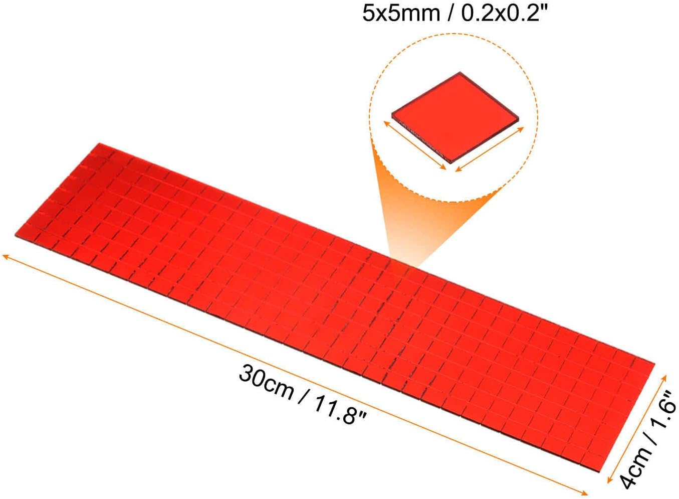 - Size - The package contains 8 strips of 4 x 30 cm / 1.6 x 11.8 inches (W * L), each strip contains 480 pieces of 5 mm / 0.2 inch square mosaic tiles, so you can get 3840 pieces of mosaic tiles in total, the color is red, which can be cut and used individually, bringing more decoration options to your crafts.