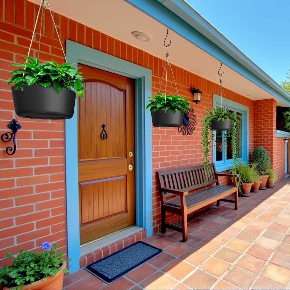 10.7 Inch Hanging Planter for Outdoor Indoor Plants,2 Pack Hanging Flower Pots with Drain Holes for Garden Home Decor Use (Black)