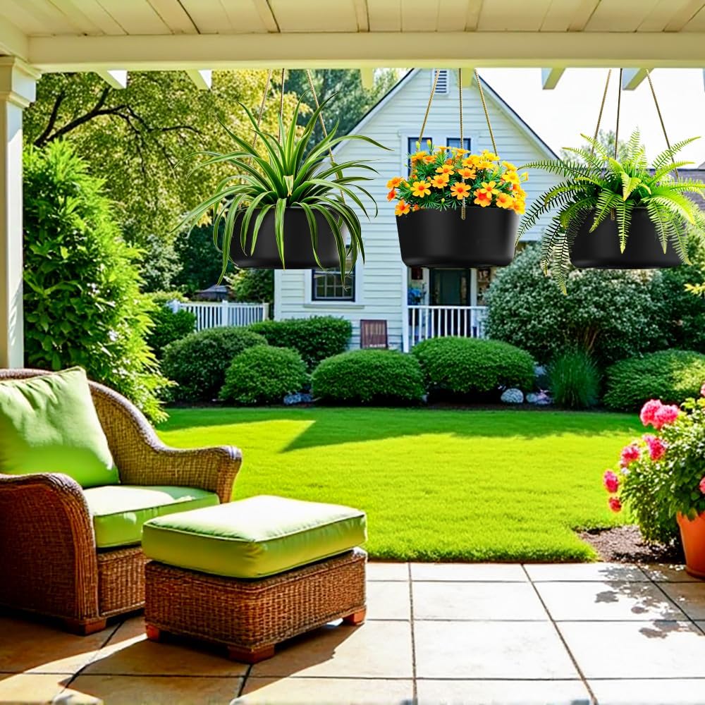 - Drainage Holes and Plugs: A water outlet is designed in the middle of the bottom of the hanging flower pots, helping prevent root rot and keeping your plants healthy. Coming with removable rubber plugs to ease the concern of overwatering for your indoor outdoor plants.