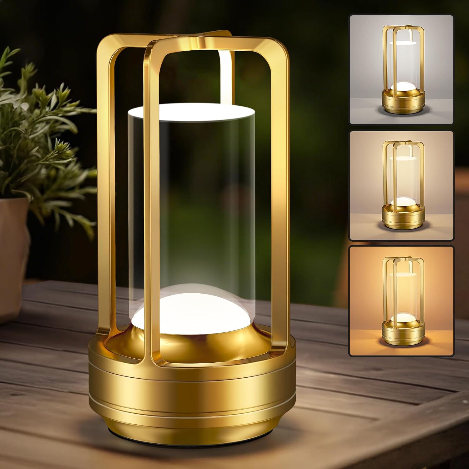 - Touch-Controlled Table Lamp with Adjustable Brightness: Switch between warm white, soft warm, and crisp white light with just a touch on this rechargeable table lamp. The stepless dimming (5%-100%) lets you customize brightness from 3000K to 6000K. Simply tap to change light modes or long-press to adjust brightness. Whether for outdoor camping, intimate dinners, or cozy nights, this gold table lamp creates the perfect ambiance.