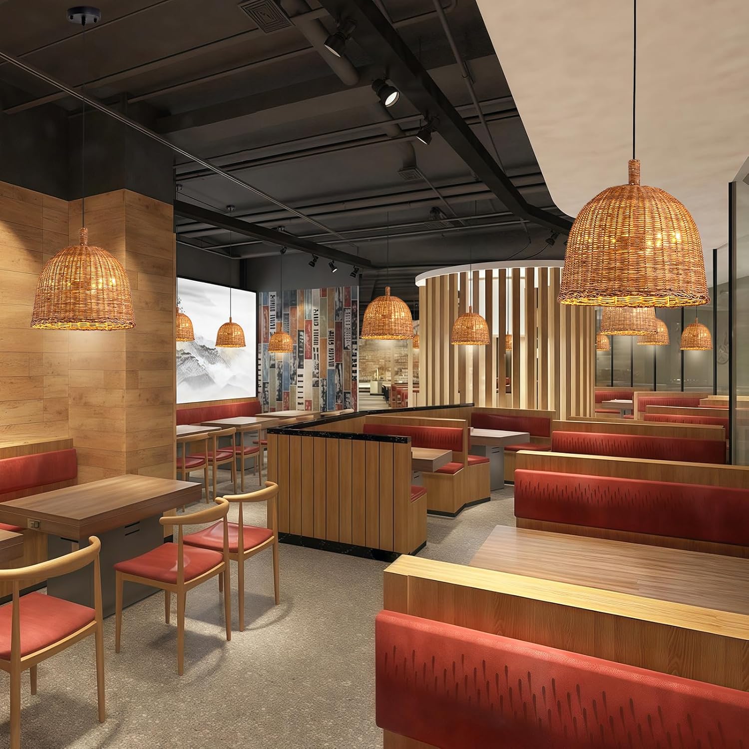 - 【Hand-Woven Rattan Chandelier Natural Material】Rattan craft is selected from the trees we grow , which undergoes various processing procedures. This Rattan craft is heat resistant, fade resistant, safe and healthy
