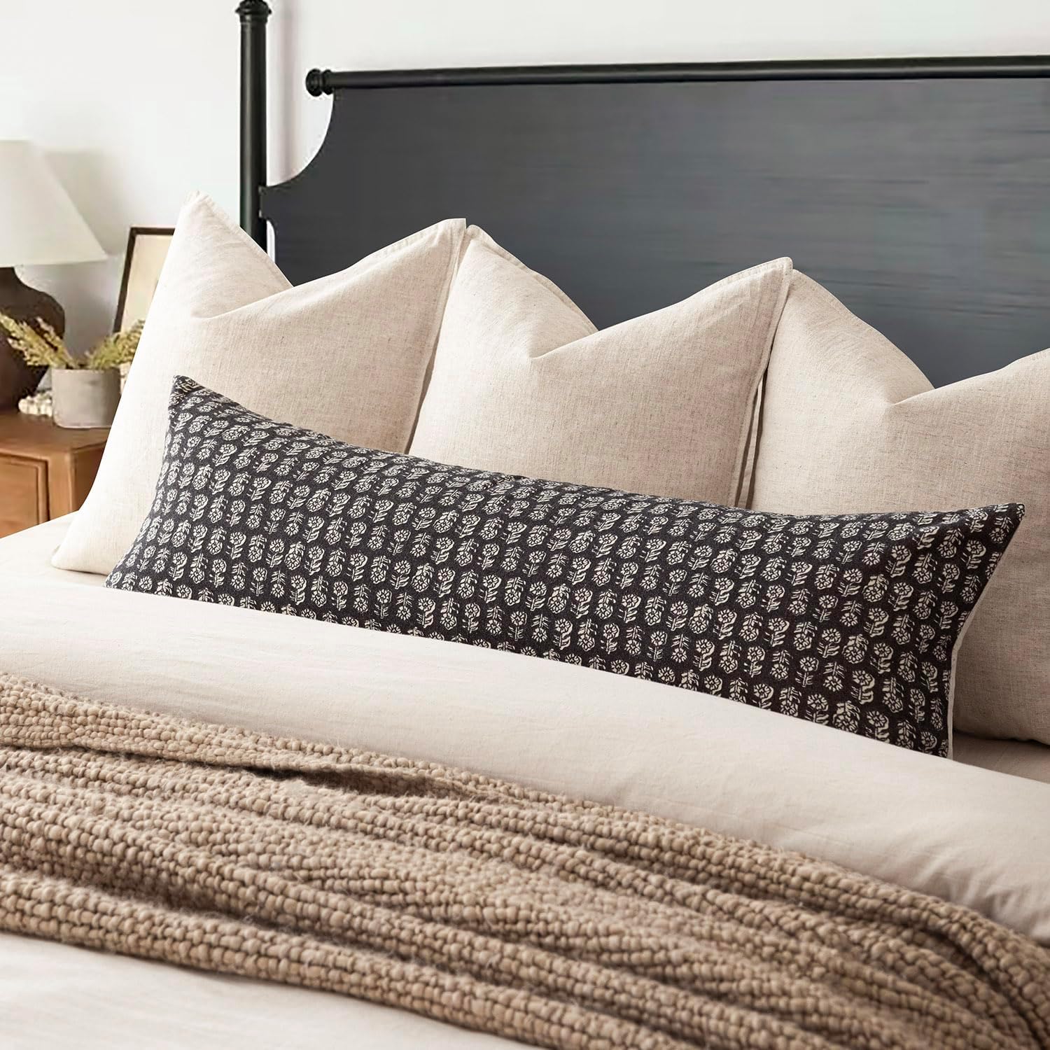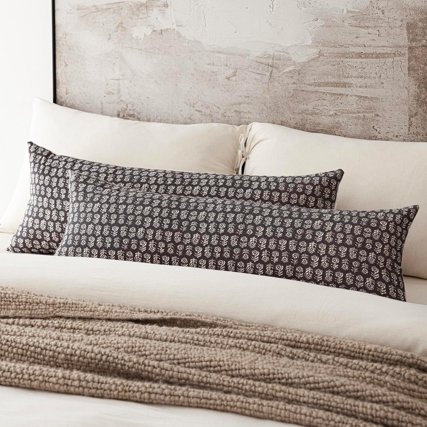 Foindtower Set of 2 Decorative Neutral Body Lumbar Throw Pillow Covers Vintage Accent Farmhouse Cushion Covers Boho Floral Home Decor for Sofa Couch Chair Bedroom Living Room Outdoor,14×36 Inch,Black