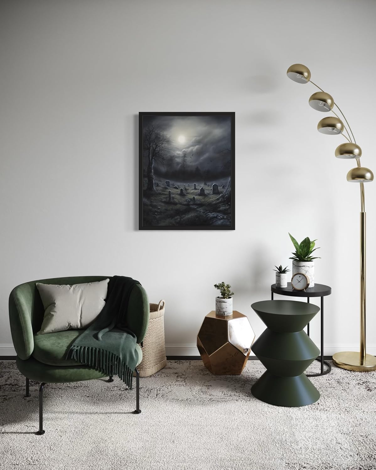 Gothic Graveyard Poster Art Print, Halloween Scary Vintage Wall Art Academia Spooky Painting Decoration for Horror Prints, Posters Bedroom Decor 89 (Gothic Graveyard, 16 x 20 inches, Unframed)