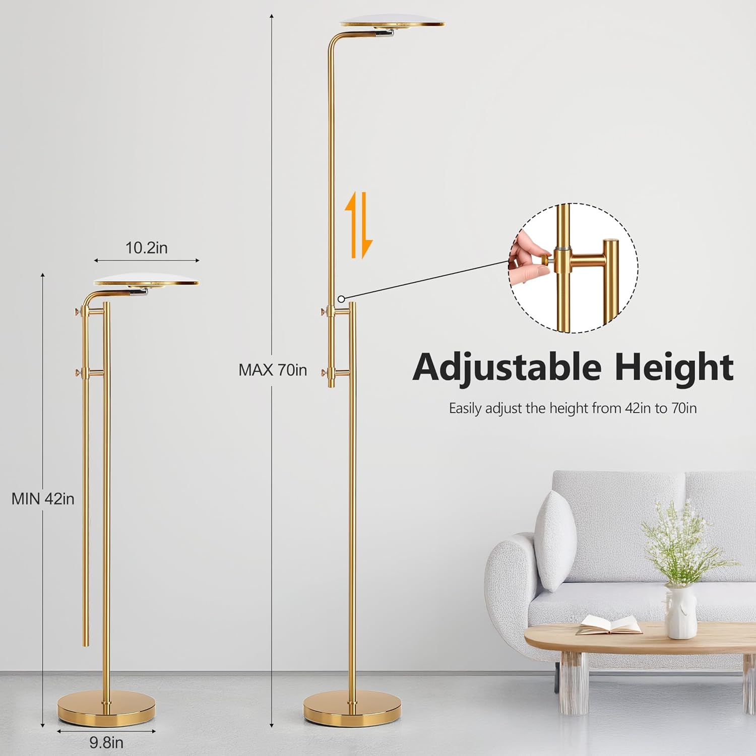 - Super Bright & Eye-Caring: This 32W/3000LM LED floor lamp suffuses living rooms, bedrooms, and offices with super-bright illumination. Whether you’re reading, working, or crafting, it casts a softly bright glow that’s gentle on the eyes. Featuring stepless brightness dimming (5%-100%) and adjustable color temperatures (3000K-6000K), it adapts seamlessly to various room aesthetics and lighting needs.