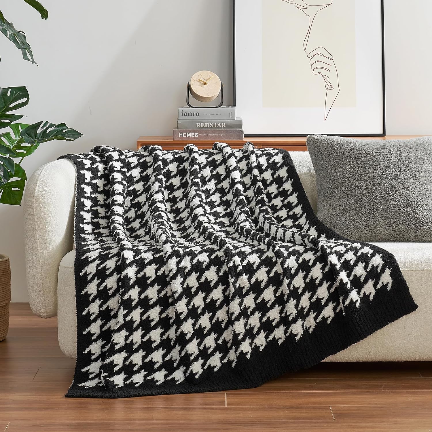 Snuggle Sac Houndstooth Throw Blanket for Couch, Reversible Super Soft Warm Blankets Cozy Knit Fuzzy Plush Lightweight Throws for Sofa, Bed, Camping, Black,50x60 inches