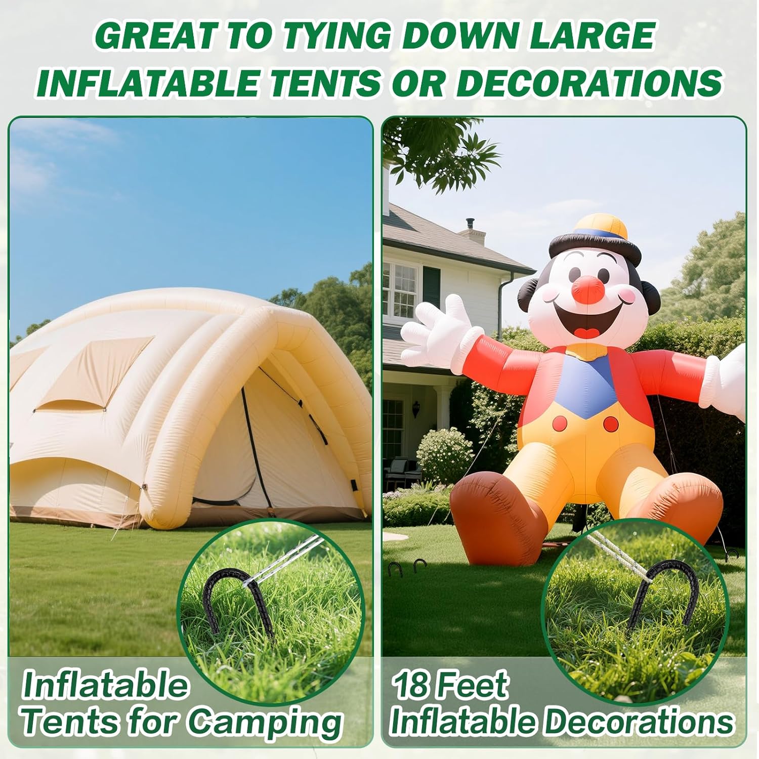 - HEAVY DUTY & EASY TO INSTALL:Constructed from durable, weather-resistant black powder-coated steel, these rebar stakes offer long-lasting performance.These metal stakes for ground are versatile tools designed to secure a wide range of outdoor items,especially great to tying down large inflatable tents or decorations.The chiseled pointed end allows for easy penetration into the ground, and users can step on the stake to drive it deeper.