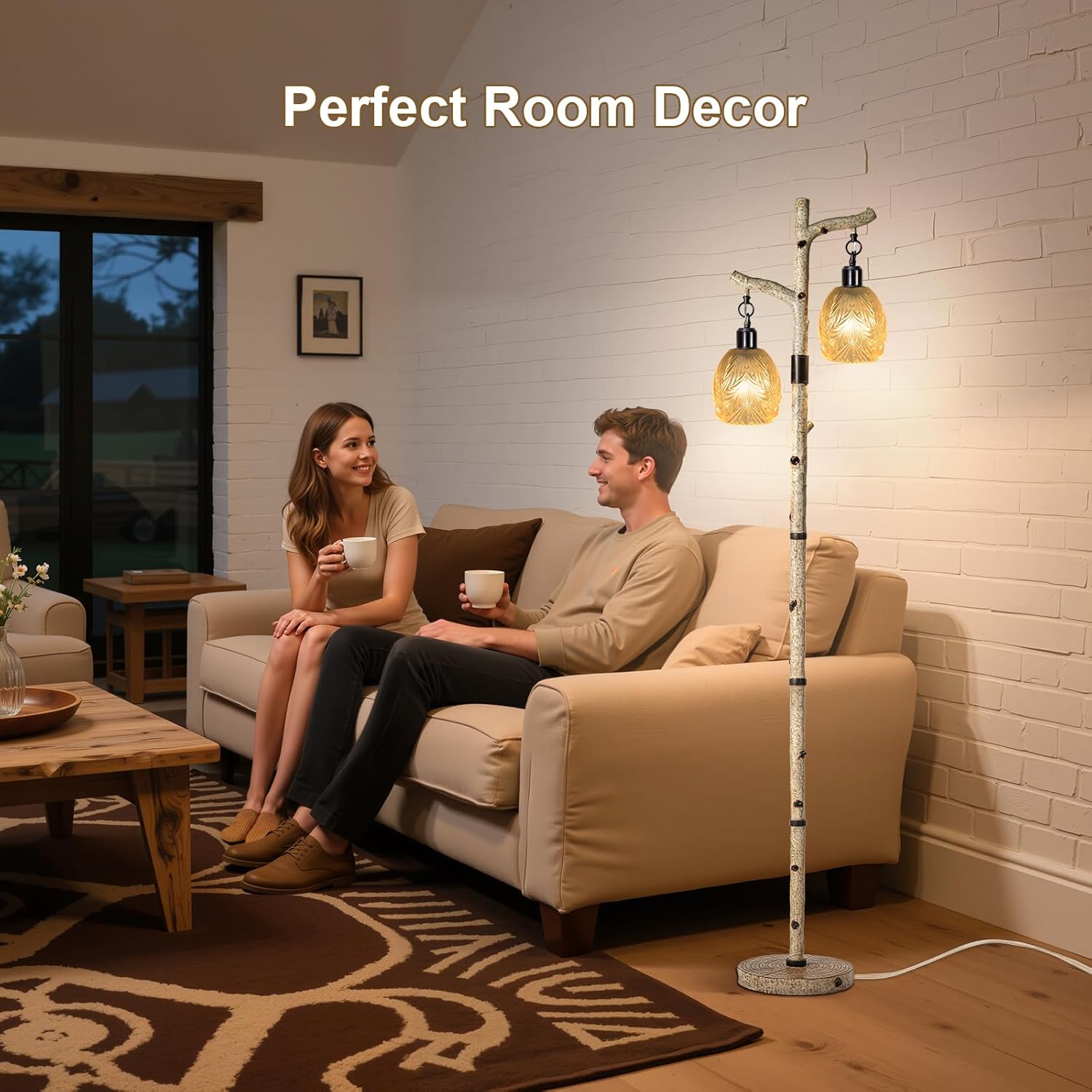 - VINTAGE FLOOR LAMP: Unique resin birch tree trunk floor lamp body, light gray finish floor lamp has retro design, non-fading, solid construction, adds a warm, vintage charm that fits perfectly with farmhouse style decor. Sturdy floor lamp, blending traditional elements aesthetics for your room