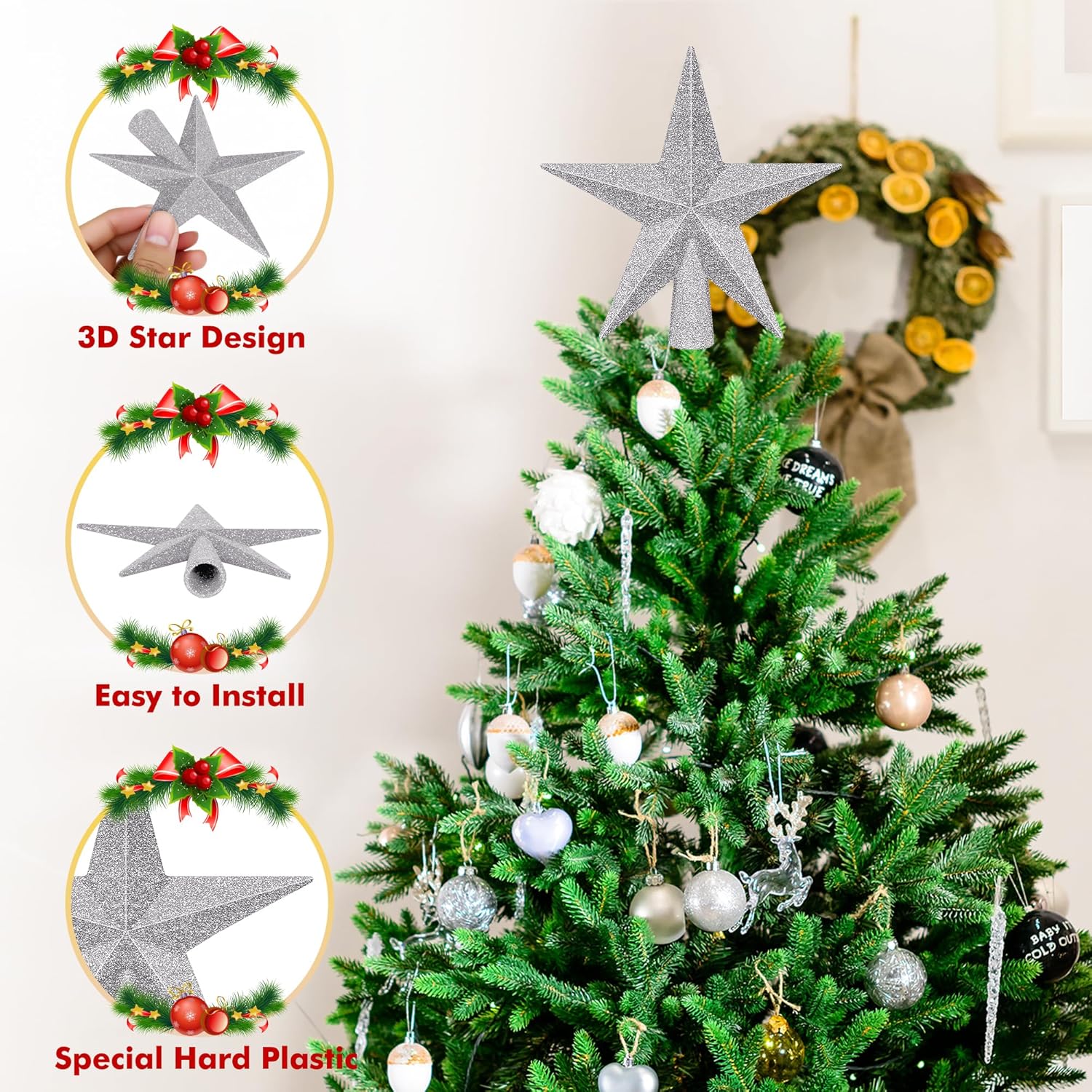 - Simple Setup - Featuring a small hole at the base, this tree topper easily attaches to the top of your Christmas tree. Despite being lightweight, it remains securely in place