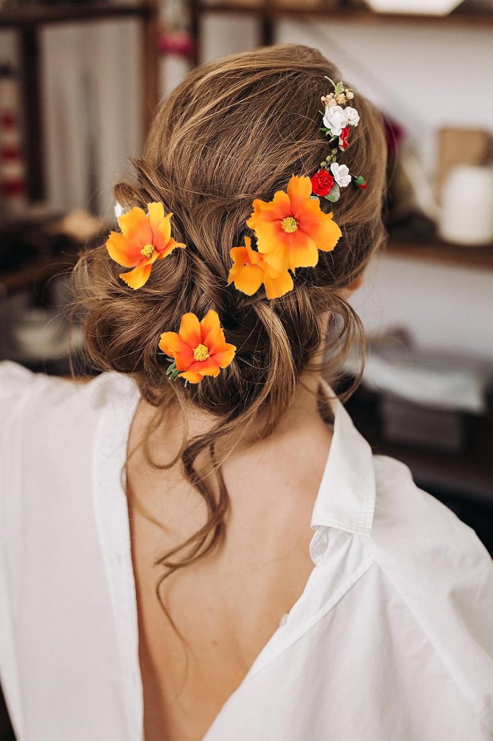 - Quantity and Size: Packed 5PCS orange cosmos artificial flowers. Total approx. 24.5inches/62cm height, bigger daisy flower 3.15”/8cm, smaller 2.36'' /6cm, cosmos bud 1.18”/3cm. Each daisy flowers artificial wildflowers set with 4 large flower heads, 1 small and 1 bud, total with 30 flowers heads. The long stem artificial flowers is ideal for your tall flowers for floor vase floral arrangements