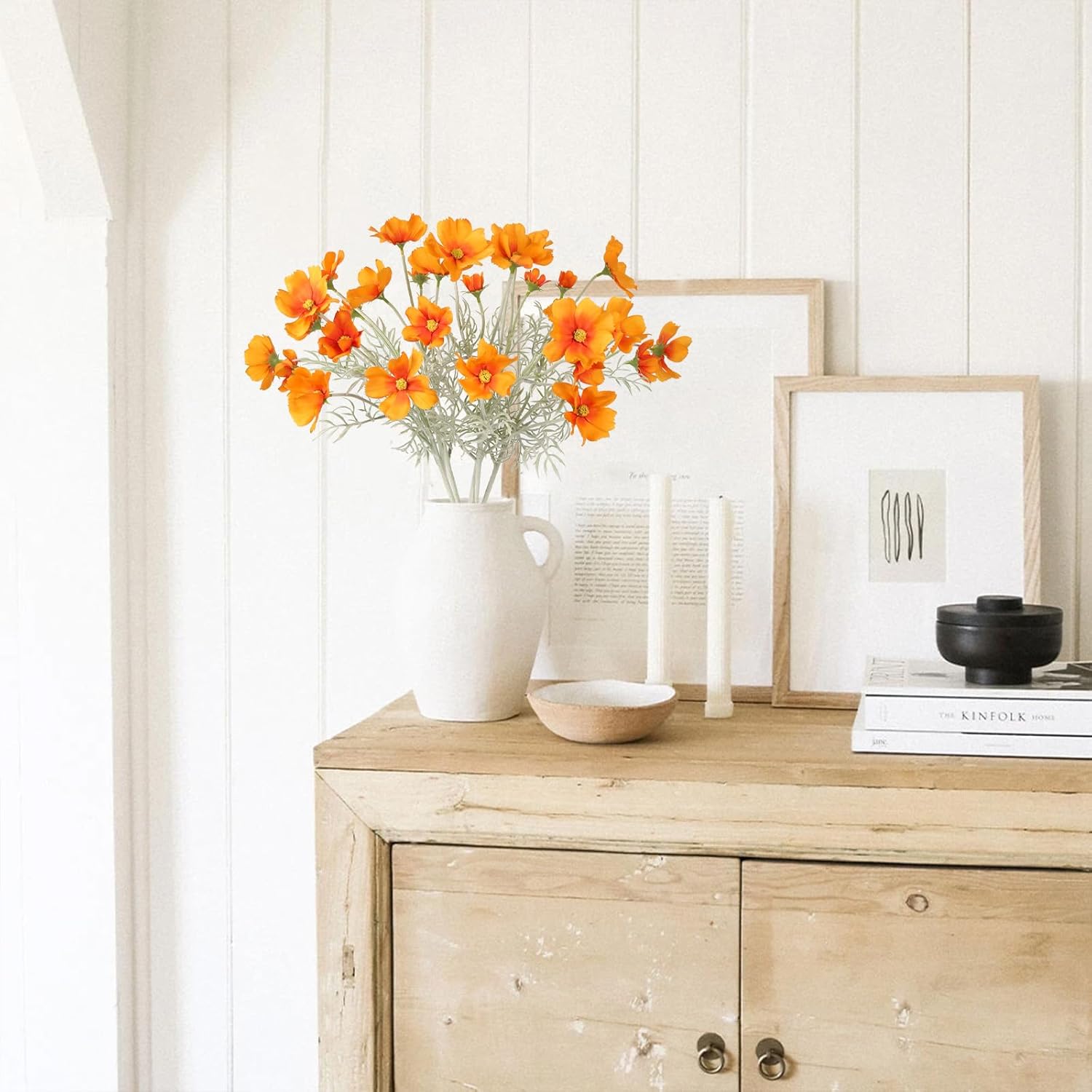 IPOPU Orange Silk Flowers Artificial Daisies 5PCS Cosmos Artificial Flowers Fake Wildflowers Daisy Flowers with Stems for Home Decor Indoor Floral Arrangements Centerpiece (Orange)