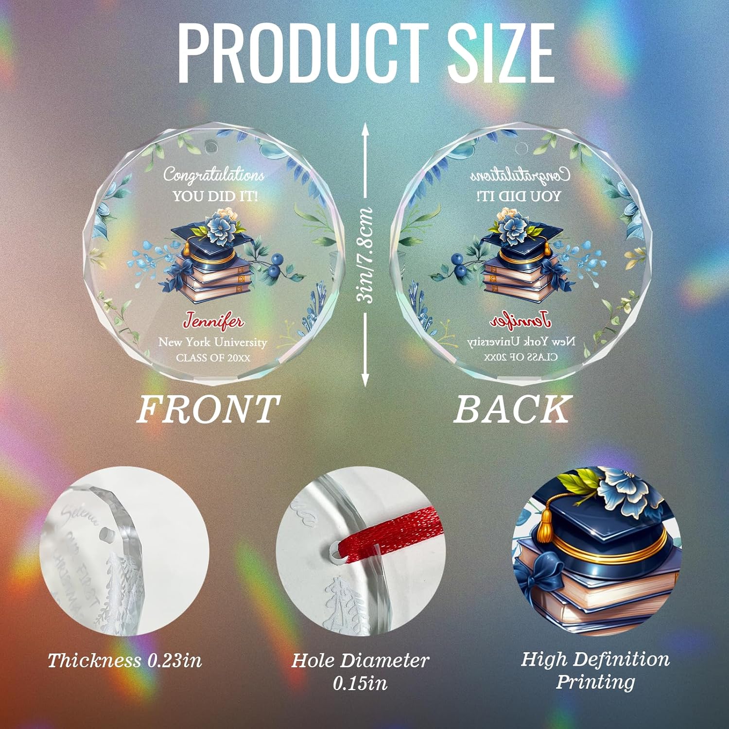 - GRADUATION MEMORIAL GIFT: If you are looking for a graduation memorial gift that can be collected for a long time, our graduation glass ornaments are worth to have, which not only can be kept beautiful for a long time, but also can be placed or hung anywhere for display, to celebrate the important moments of graduation, but also can be easily stored in a box, pocket to accompany you to any place