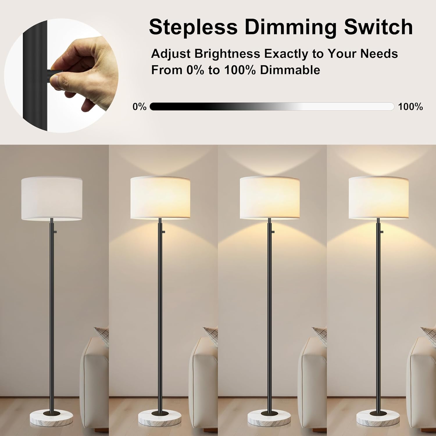 - Stepless Dimming 0-100%: This floor lamp bedroom offers 0-100% dimmable brightness, perfect for creating different atmospheres and customizing your ideal floor lamp. Aulaiyi floor lamp features a rotary switch, making adjustments quick and easy.