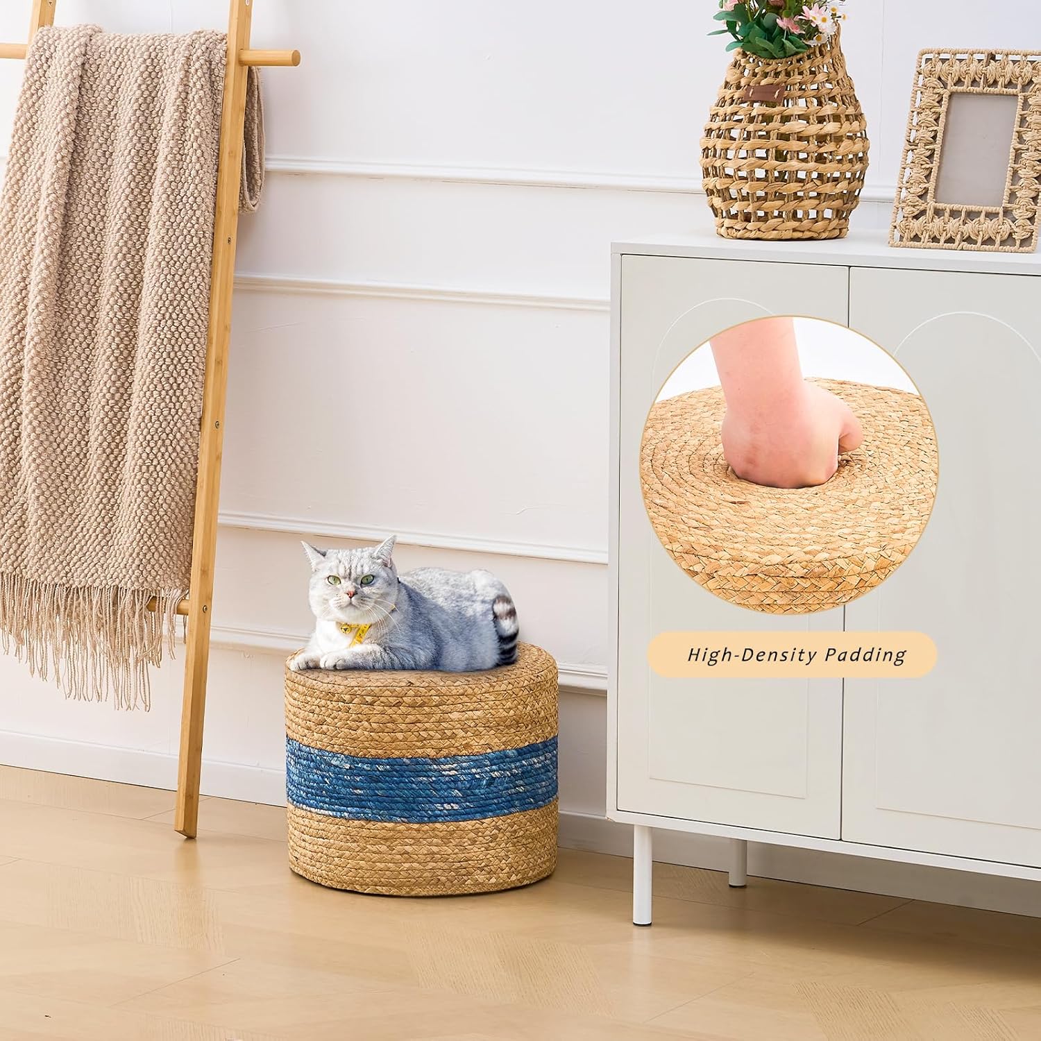 - 【Natural Water Hyacinth】Crafted from natural water hyacinth, LGENHOOM pouf brings a warm, organic look and feel to any space.