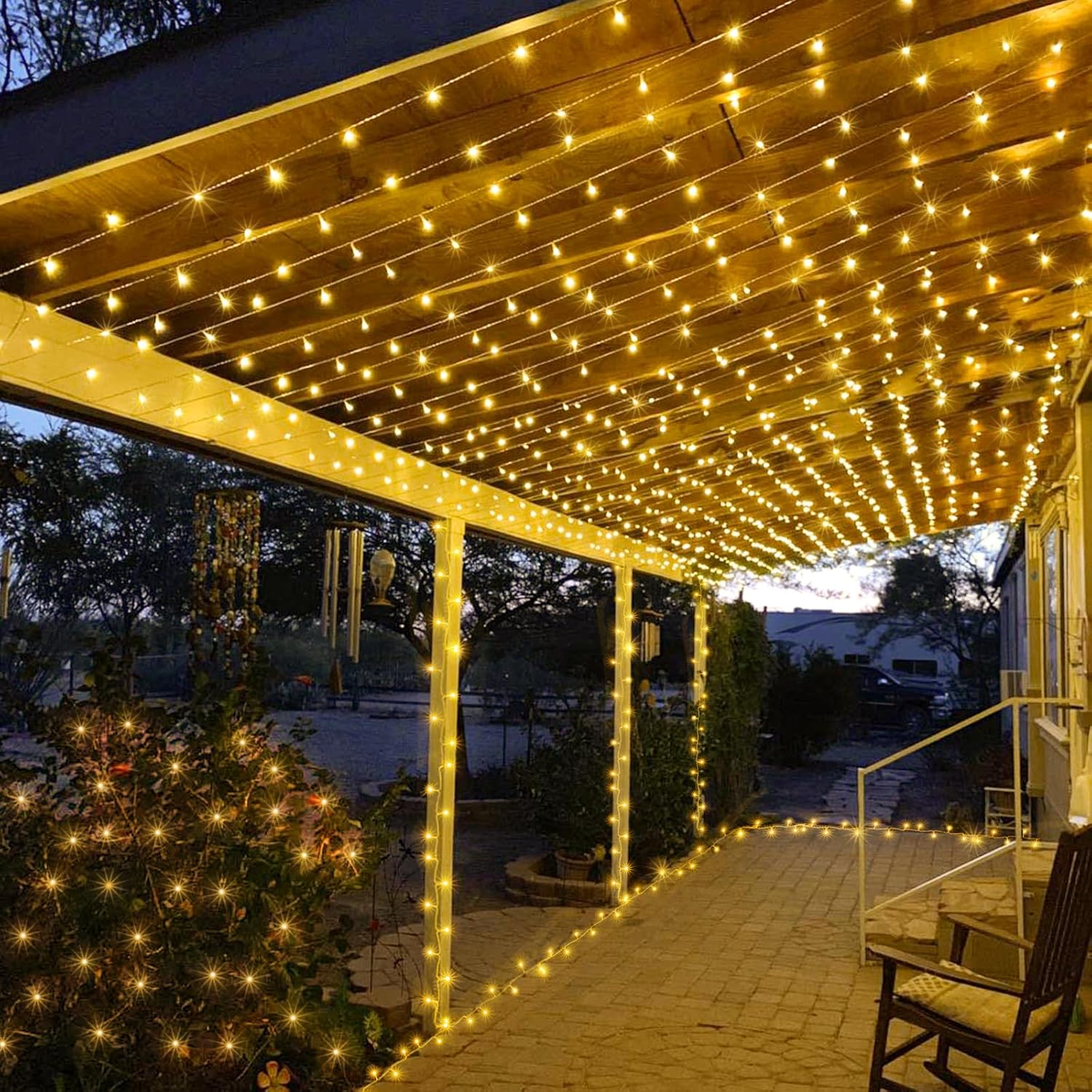 - Waterproof Fairy Lights Plug in: The warm white Christmas lights design with IP44 outdoor waterproof, can withstand wind, snow, rain and extreme weather. String lights are equipped with a UL certified 29V low-voltage plug ensures the safety. It's safe for family with kids or pets!