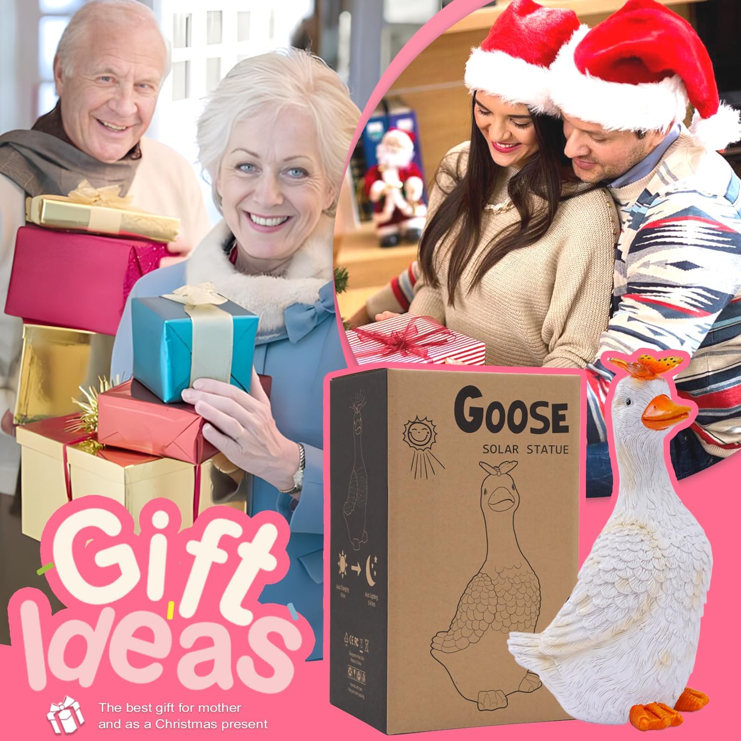 Goodeco Porch Goose Statue with Butterfly - Outdoor Garden Goose Decor for Yard, Unique Gifts for Mom & Garden Lovers (Off White)