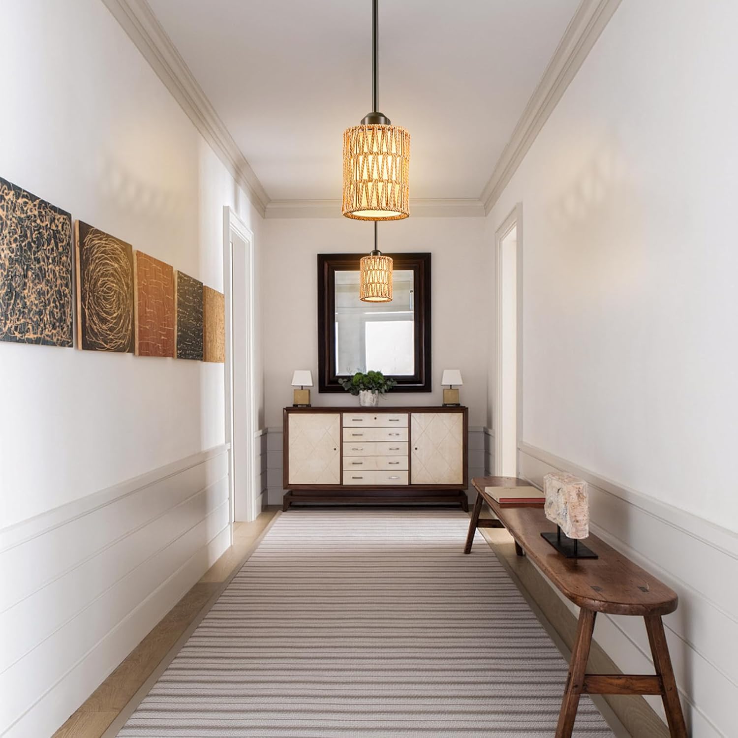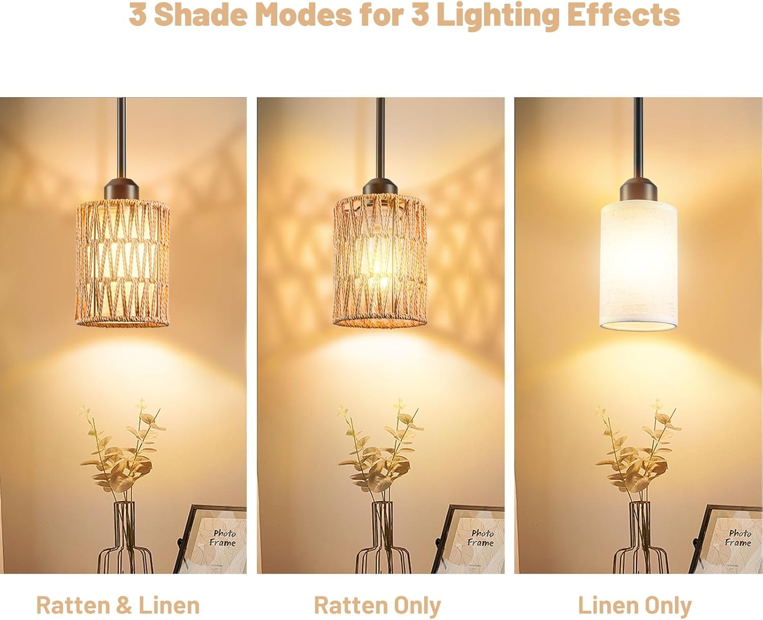 - 【3-in-1 Pendant Light with Double Lampshade】This Rattan Pendant Light comes with a woven & linen lampshade, has 3 display effects, the removable lampshade can be freely combined according to your preference. The rattan pendant light blends perfectly with farmhouse, bohemian, vintage and industrial home styles, adding a natural element to your home decor. When the boho pendant light lit, the light from the shade projects a very beautiful pattern on the wall