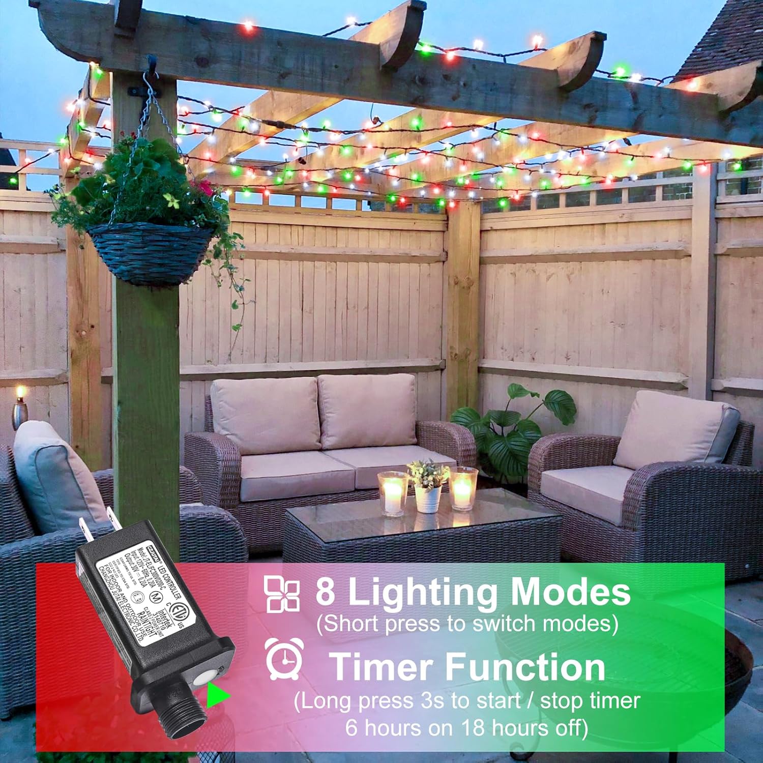 - Timer and Memory Function: Long press the button on the plug to activate timing function, 6 hours on and 18 hours off a day. Moreover, the built-in memory chip will intelligently remember your last settings without having to reset every time. Create a mesmerizing festive atmosphere for Christmas, Halloween, birthday, parties or weddings.
