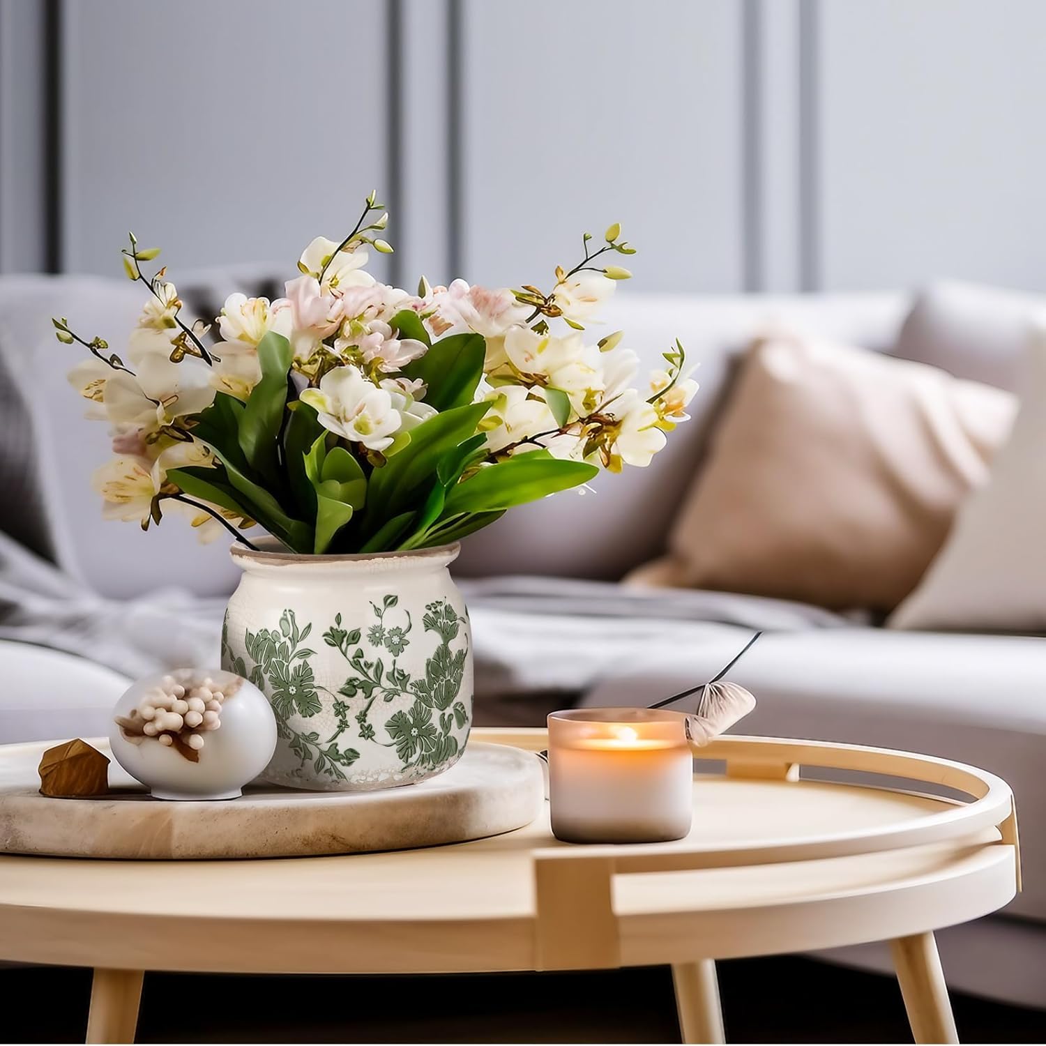 2 Pcs Vintage Planter Large Ceramic Plants Pot Beige Green Vintage Floral Ice Crack Cottage Scroll Vase Flower Vase Pot Indoor Plants Home Kitchen Decor Farmhouse Antique Decorative Gifts
