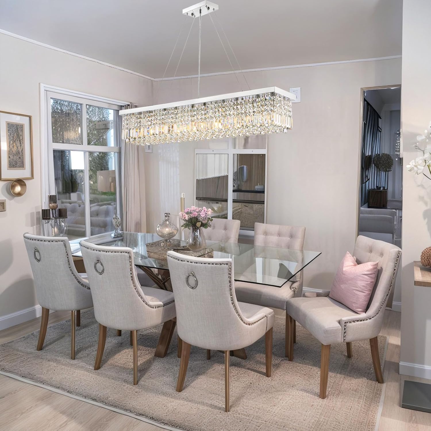 - EASY INSTALLATION: This dining room chandelier comes with all necessary mounting hardware and a detailed instruction manual for quick, hassle-free setup. The user-friendly design and secure packaging ensure that each crystal arrives intact โ your new chandelier will be ready to shine in your foyer, dining area, or kitchen with minimal effort.